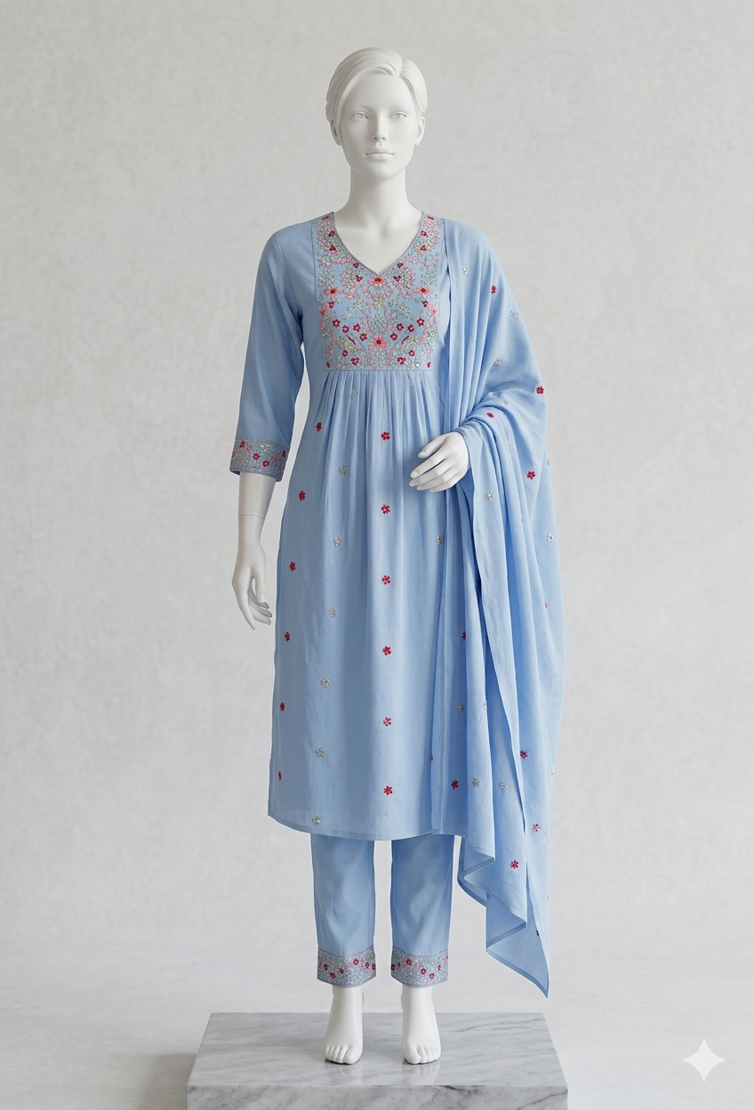 Choosing the right latest material also means picking the right colors. In 2026, we are seeing a move away from neon shades toward: — Soothing Pastels: Powder Blue, Mint Green, and Blush Pink. — Jewel Tones: Deep Emerald, Royal Maroon, and Sapphire Blue for festive arrivals. — Earth Neutrals: Rust, Beige, and Mustard for the “Boho-Ethnic” look.