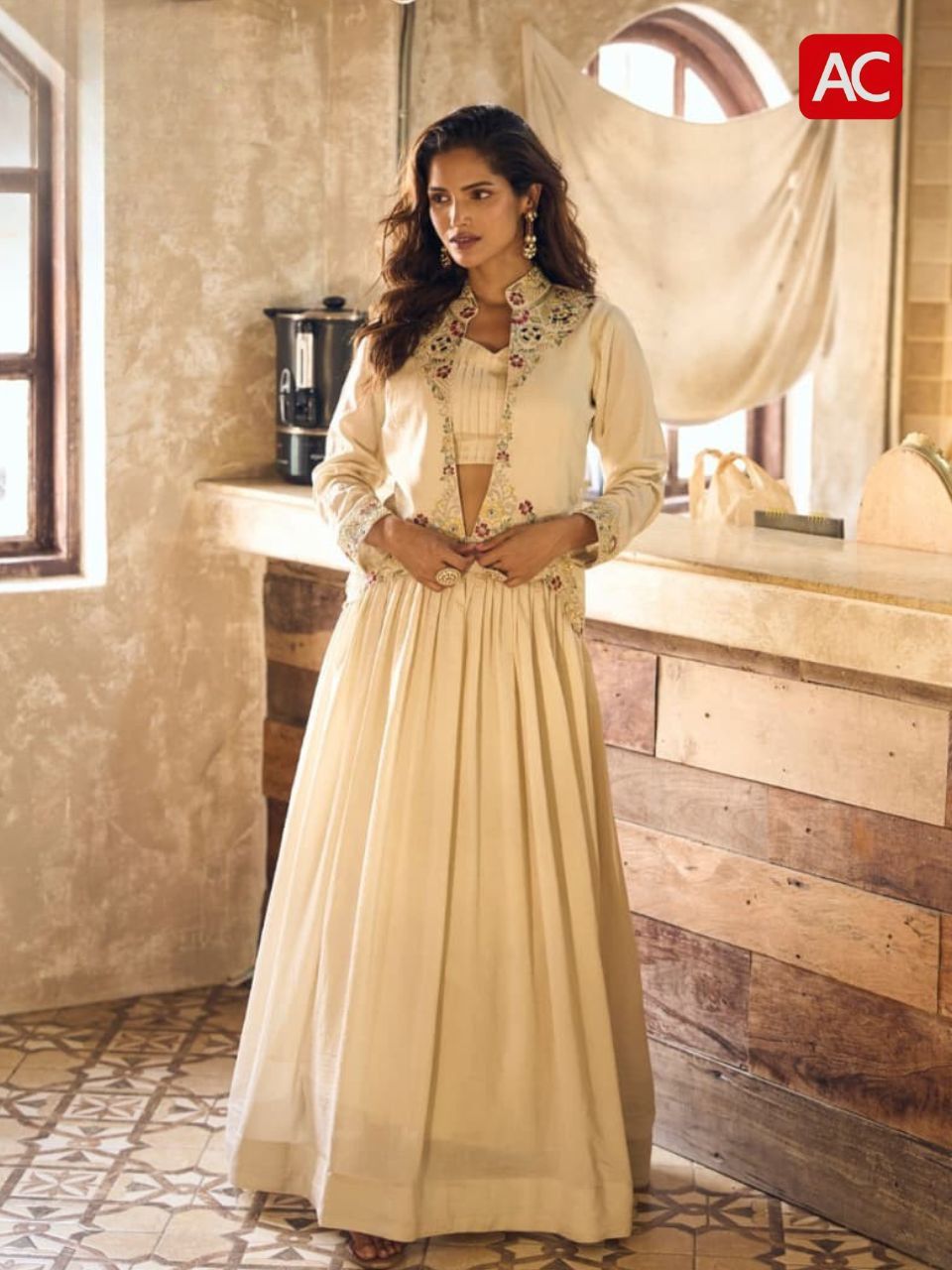 Be the first to review “Cream Anarkali Dress with Embroidered Jacket”