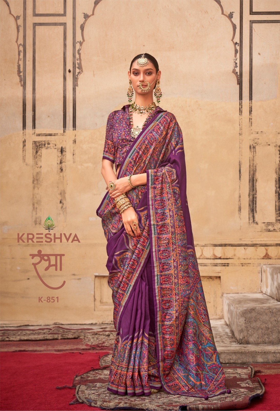 Agarwal Creation Fashions Pvt. Ltd. was based in Pune, Maharashtra and since 1984, the organization has been working at the helm of saree industry. It is specialized in manufacturing, exporting, and trading a dazzling collection of designer sarees, fancy sarees, printed sarees, bridal sarees, Bollywood sarees, and ladies kurtis. The product portfolio is appreciated for its high-quality, aesthetic design, and standards that go according to the global standards. We deal with only reliable vendors who are selected based on their market reputation, innovative designs, and reliability. One of our show-stoppers is the Kreshva Rambha Saree which epitomizes the perfect marriage of tradition and modern craftsmanship. Under the able guidance of Rupali Aggarwal, we have established a benchmark in the industry and continue to present sarees such as the Kreshva Rambha Saree cherished for their beautiful appearance, fine finish, and bright colors. Our commitment to excellence ensures that every saree, including the Kreshva Rambha Saree  is delivered in perfect condition, ready to enhance any occasion.