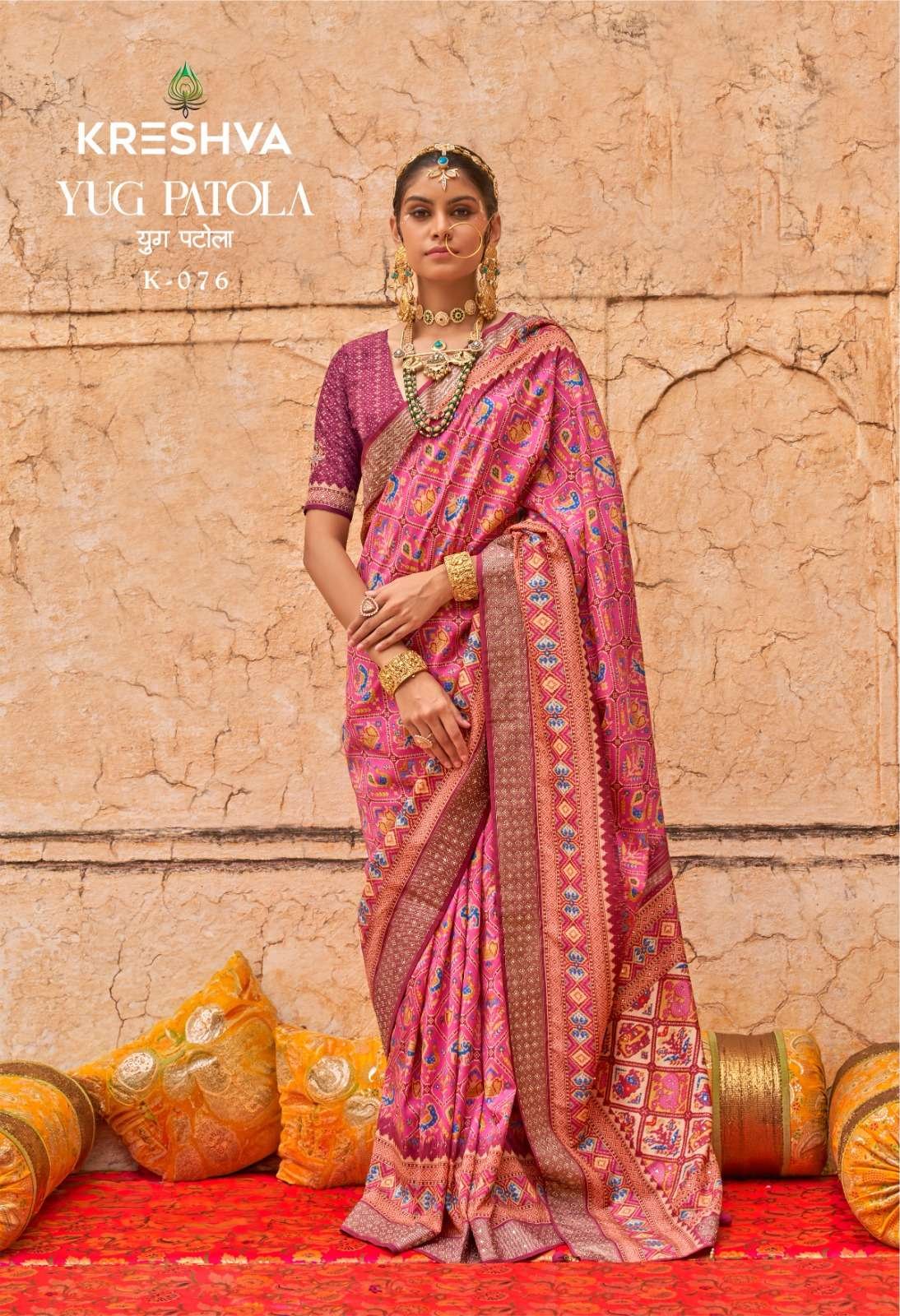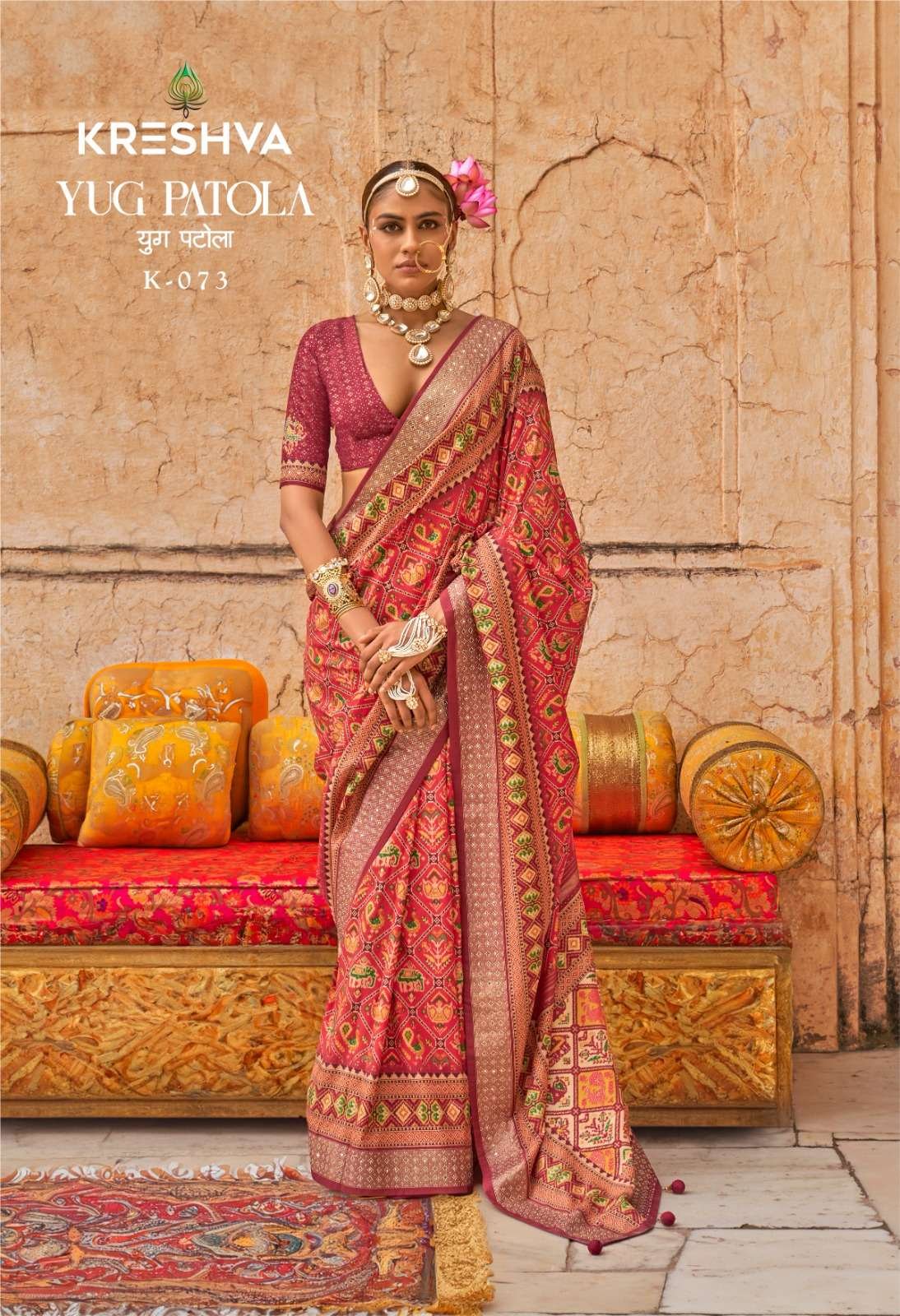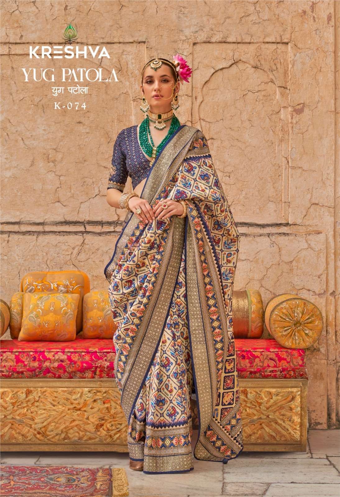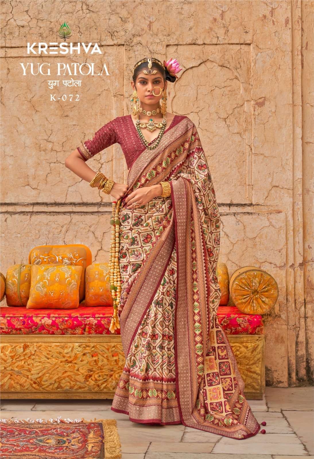 Agarwal Creation Fashions Pvt. Ltd. is one of the leaders in the saree industry based in Pune, Maharashtra, since 1984. We are manufacturers, exporters, and traders of a great variety of designer sarees, fancy sarees, printed sarees, bridal sarees, Bollywood sarees, and ladies kurtis. Our collections are premium quality, beautiful designs, and follow international standards. We work with the best vendors in the market, known for their designs and reliability. One of our most iconic designs is the Kreshva Yug Patola Saree, which epitomizes the timelessness and artistry that defines our brand. Under the guidance of Rupali Aggarwal, we have established a benchmark in the industry, providing sarees such as the Kreshva Yug Patola Saree, which are cherished for their attractive look, smooth finish, and vibrant colors. Our commitment to excellence ensures that every saree, including the Kreshva Yug Patola Saree, is delivered in perfect condition, ready to enhance any occasion.