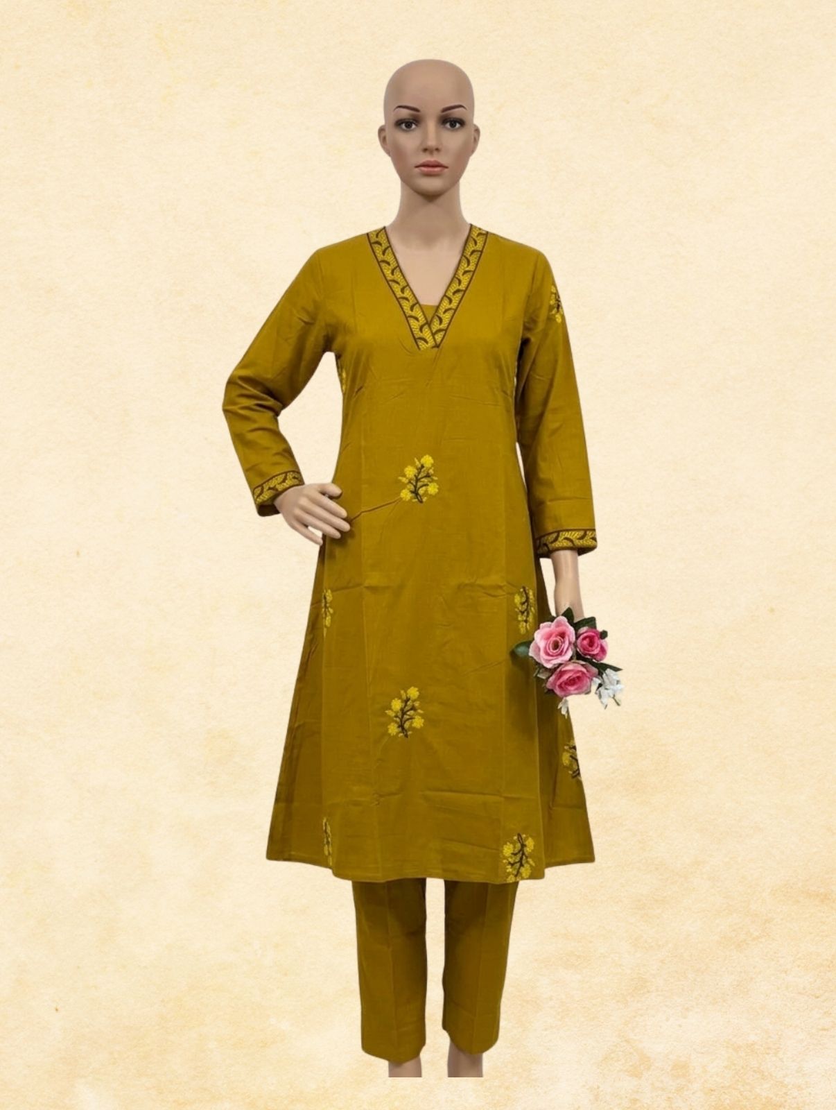 Be the first to review “Mustard Yellow Floral Booti Embroidered A-Line Kurta with Slim Pant | 2-Piece Women’s Ethnic Co-ord Set”