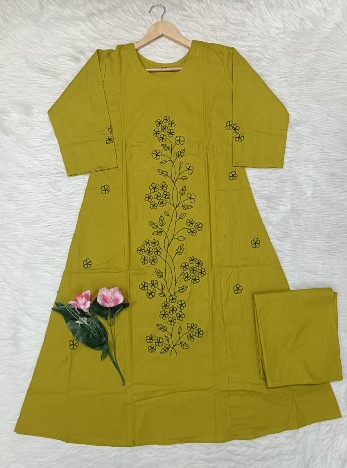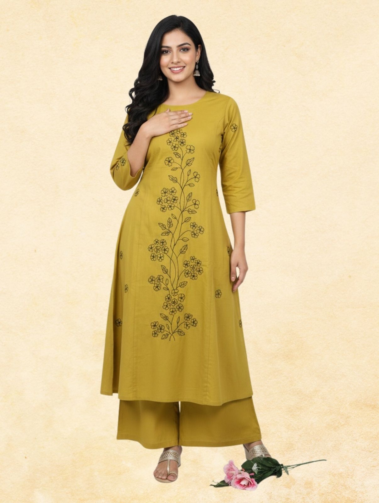 Mustard Yellow Floral Embroidered A-Line Kurta with Palazzo | 2-Piece Women’s Ethnic Set