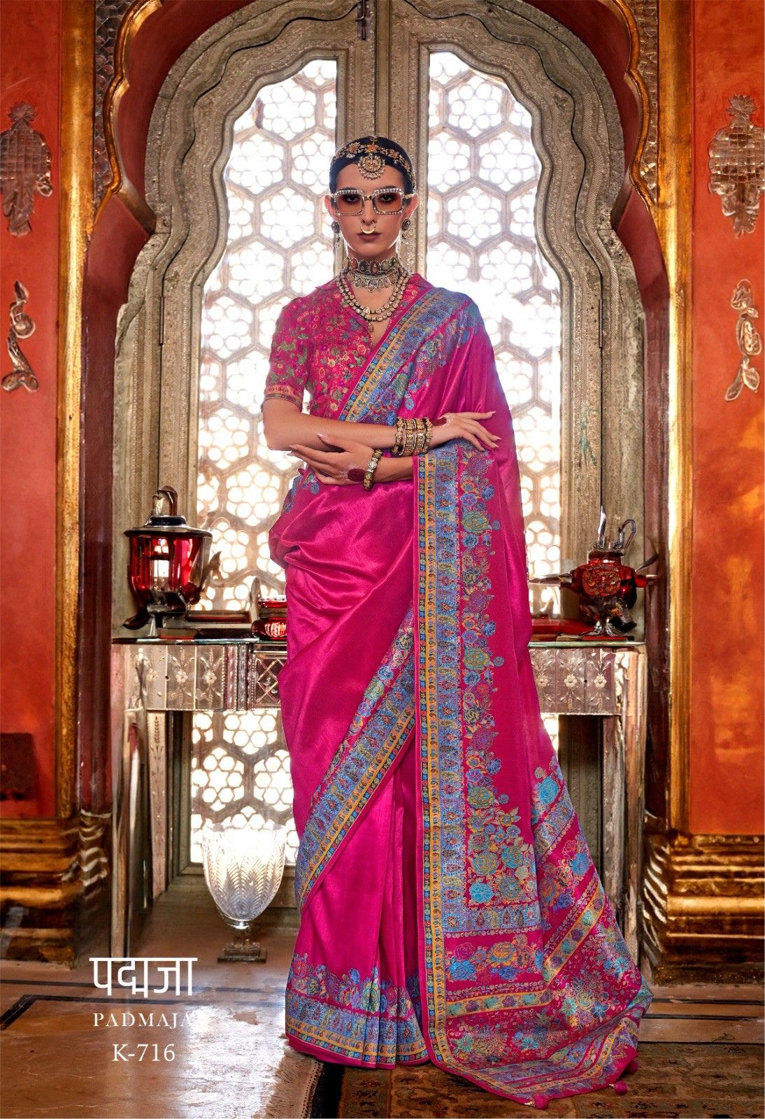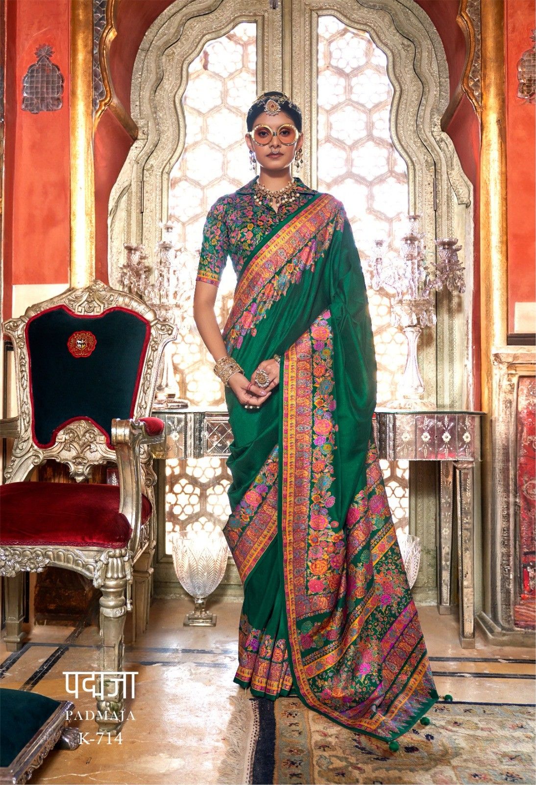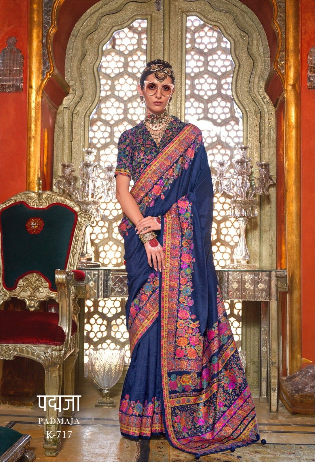 Radiate warmth and elegance with this Padmaja K-713 Designer Saree in a glowing sunshine yellow shade. Featuring a richly detailed multicolor floral Kashmiri-inspired printed border and pallu with vibrant blooms in pink, blue, and purple tones, the clean yellow body creates a striking contrast that exudes festive charm. Paired with a matching printed blouse in coordinating floral tones, this saree is a breathtaking choice for weddings, sangeet ceremonies, and festive celebrations.