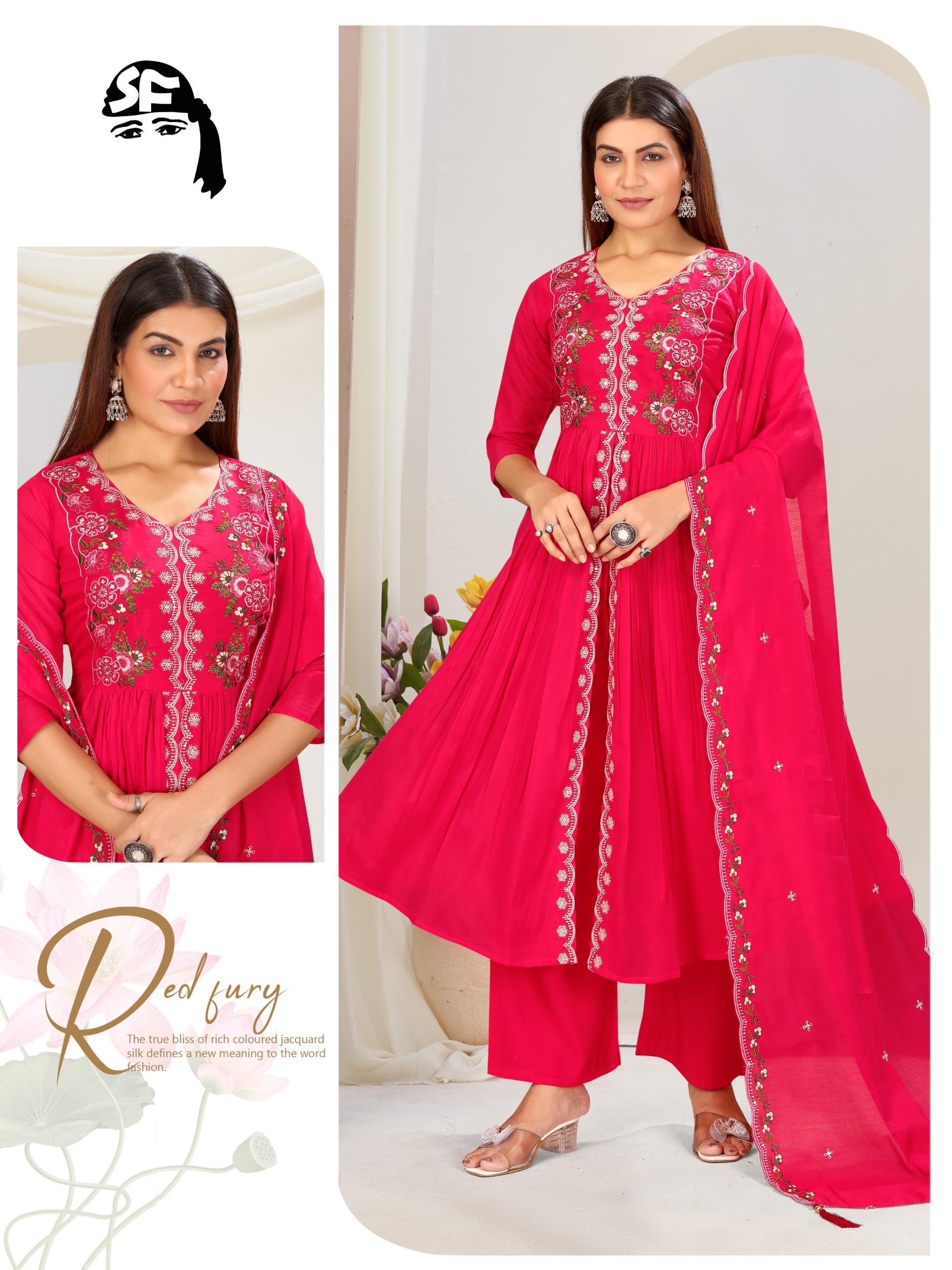 Pink Embroidered Mal Chanderi Silk Anarkali Kurti Set crafted in premium Mal Chanderi , featuring elegant embroidered neckline. Comes with matching pants and dupatta, perfect for festive and occasion wear.