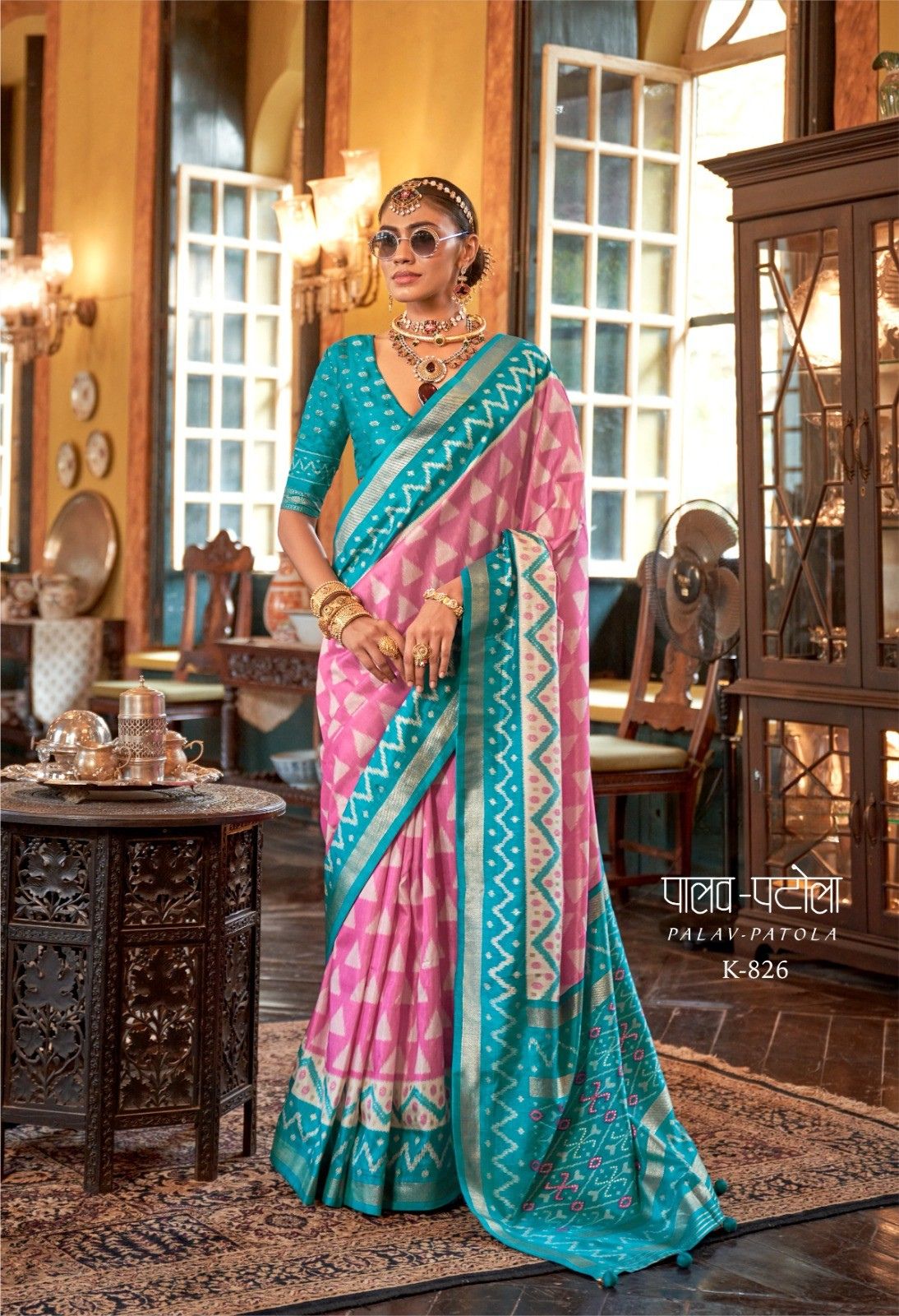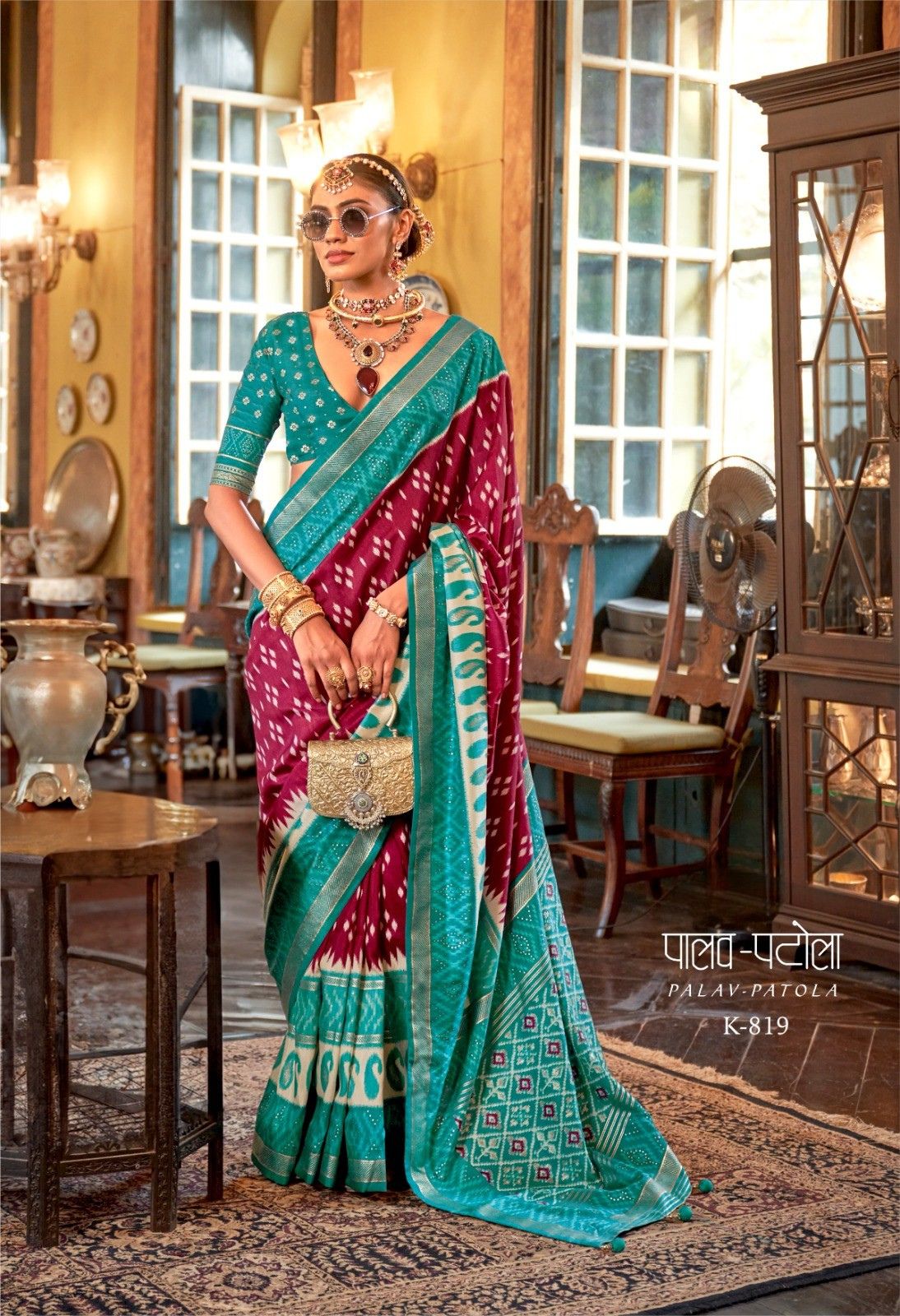 Step into timeless elegance with this Printed Patola Style Saree featuring a vibrant teal green base paired with a rich maroon pallu. Designed with traditional-inspired prints and a modern color palette, this saree is perfect for festive occasions, celebrations, and statement ethnic looks.