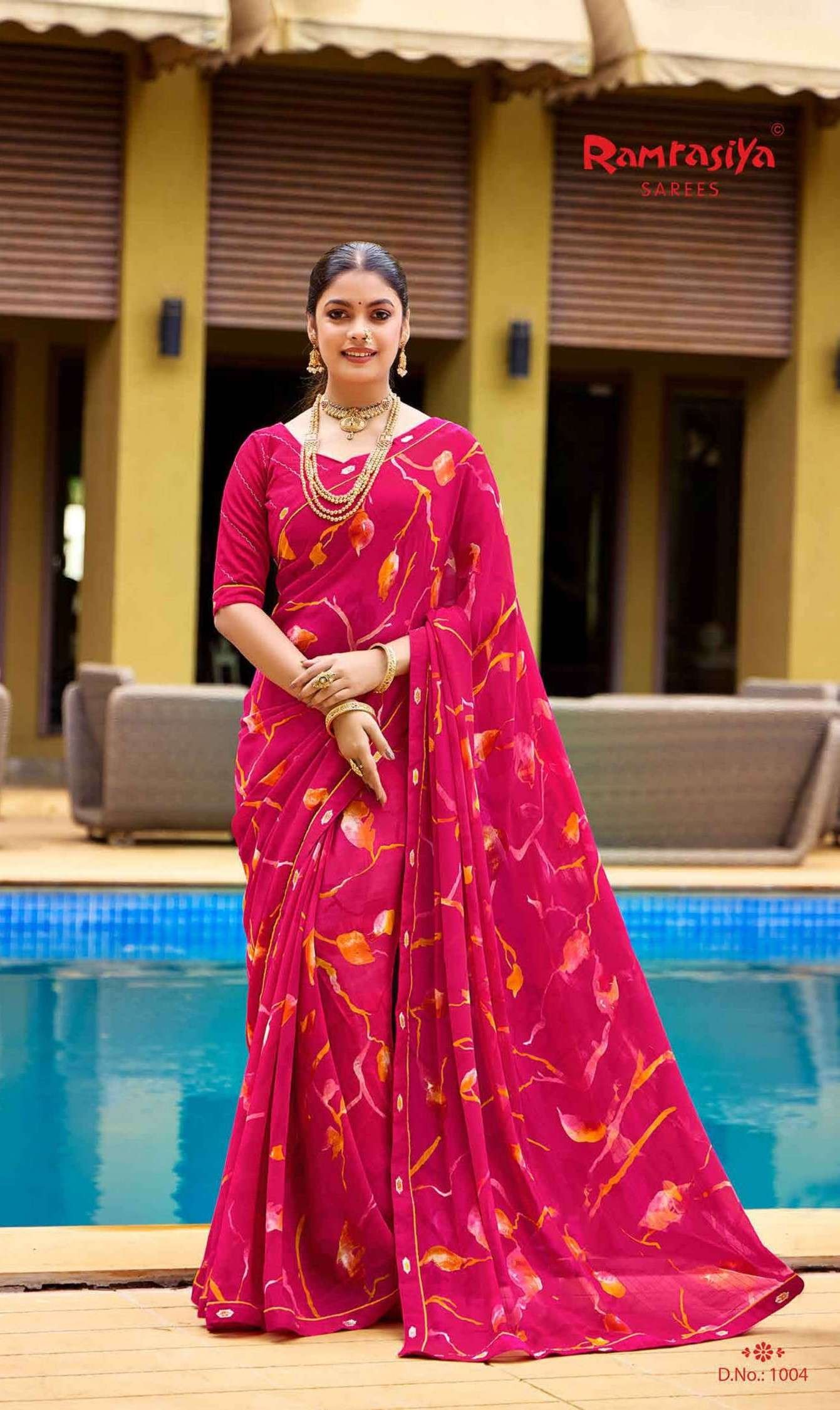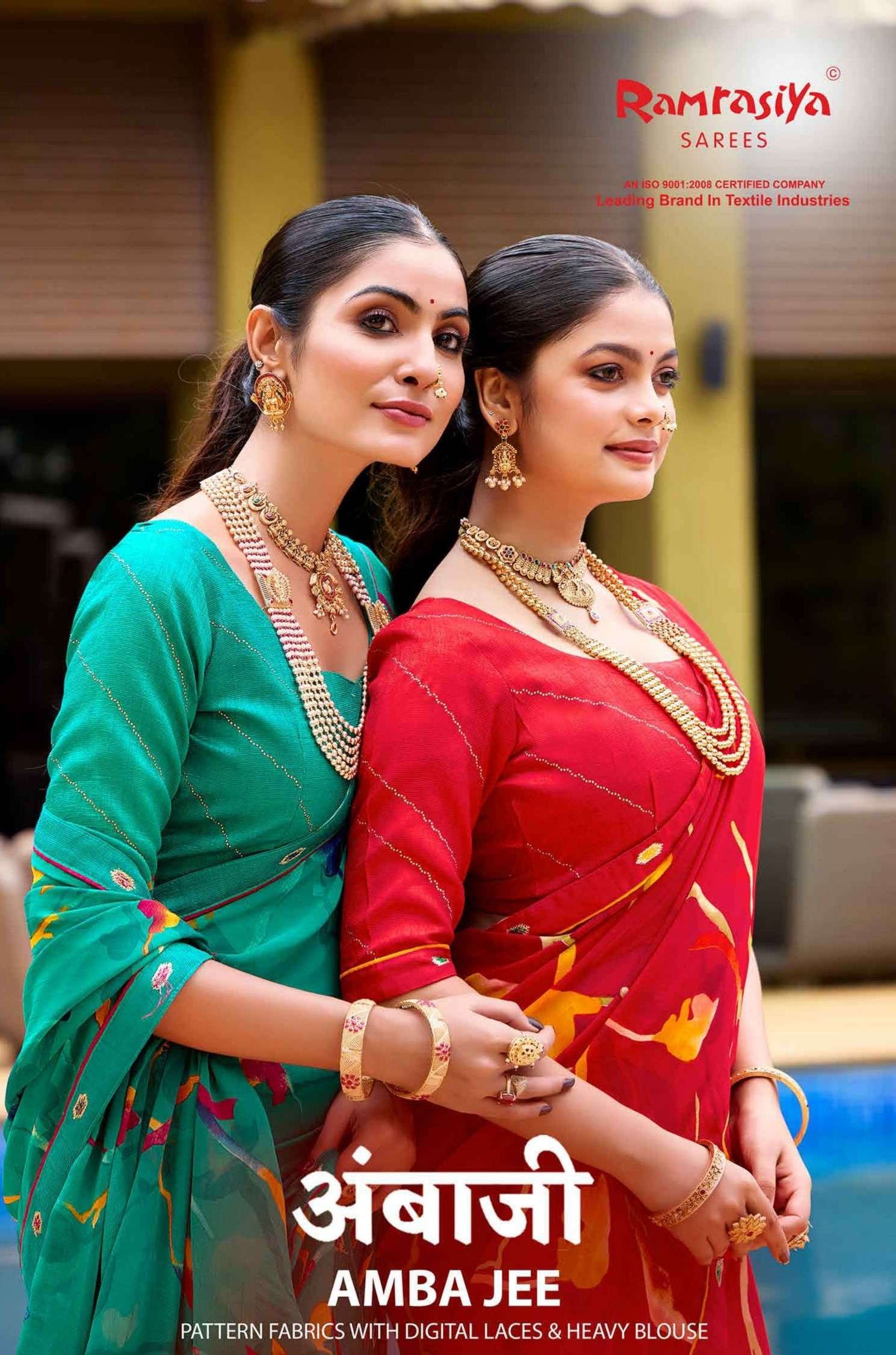 One of the most amazing additions to our collection is the Ramrasiya Amba Jee Saree. This saree epitomizes elegance and grace, which is perfect for women who like to make an impression. It is made of luxurious materials to bring out the beauty and poise of the wearer. The sophisticated pattern and vibrant color palette of the Ramrasiya Amba Jee Saree are ideal for weddings, formal gatherings, or any special occasion when you want to stand out.
