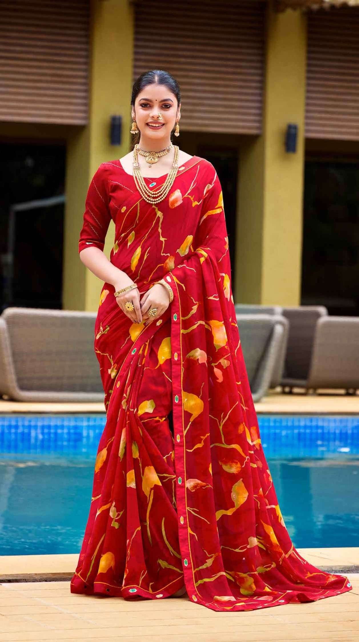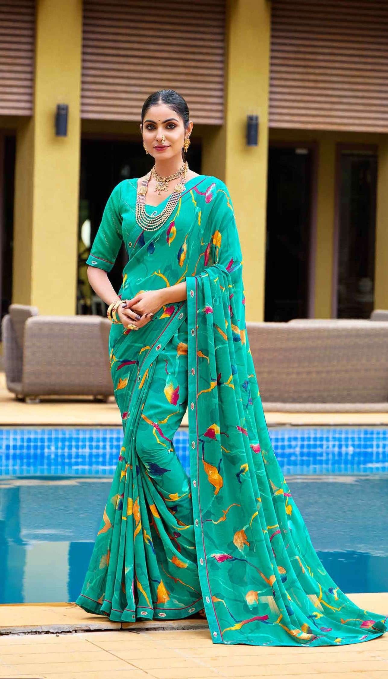 Printed Sarees: Agarwal Creation offers printed sarees with contemporary and traditional prints to reach a larger audience. These range from floral to geometric, paisley to abstract. It can be picked according to the mood of the person or event.