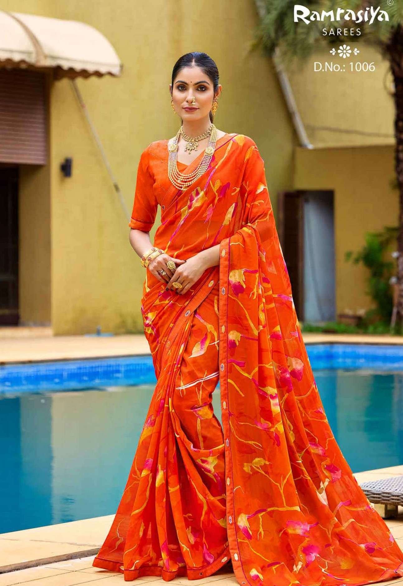 We, at Agarwal Creation Fashions Pvt. Ltd., make sure that each Ramrasiya Amba Jee Saree has quality to its maximum extent. It is elegantly designed with the finest quality fabric and rich finish. The beauty of this saree makes a statement about one’s sense of fashion for life.