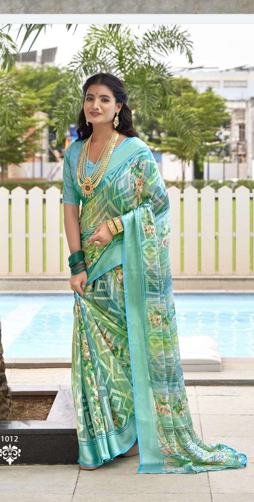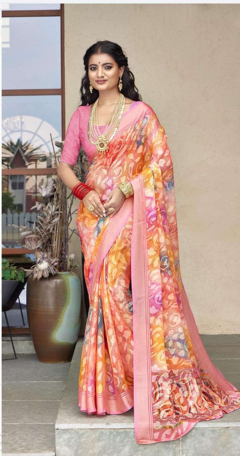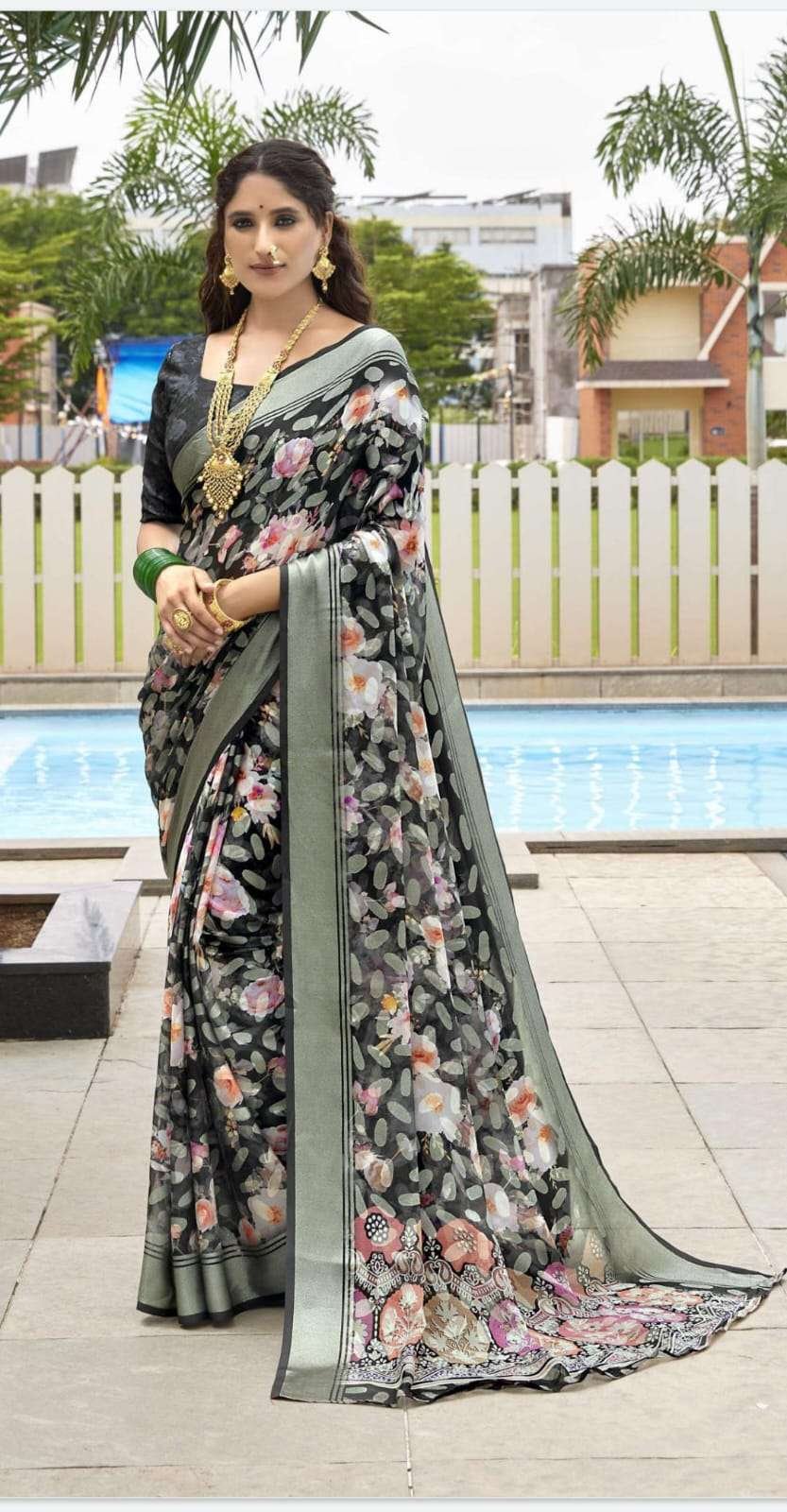 Printed Sarees: Agarwal Creation offers printed sarees with contemporary and traditional prints to reach a larger audience. These range from floral to geometric, paisley to abstract. It can be picked according to the mood of the person or event.