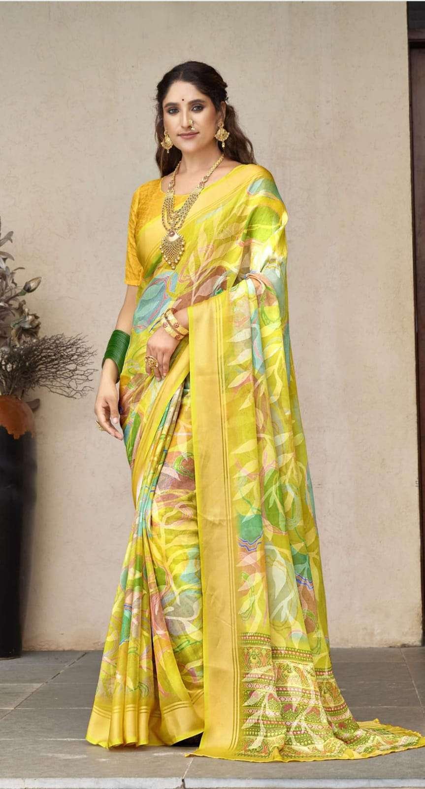 With its unique design and fine craftsmanship, the Ramrasiya Kamal Nayan Saree adds a touch of sophistication and charm to the wearer. The detailed patterns and vibrant colors reflect the richness of Indian textile art, making it a must-have for those who appreciate traditional elegance.