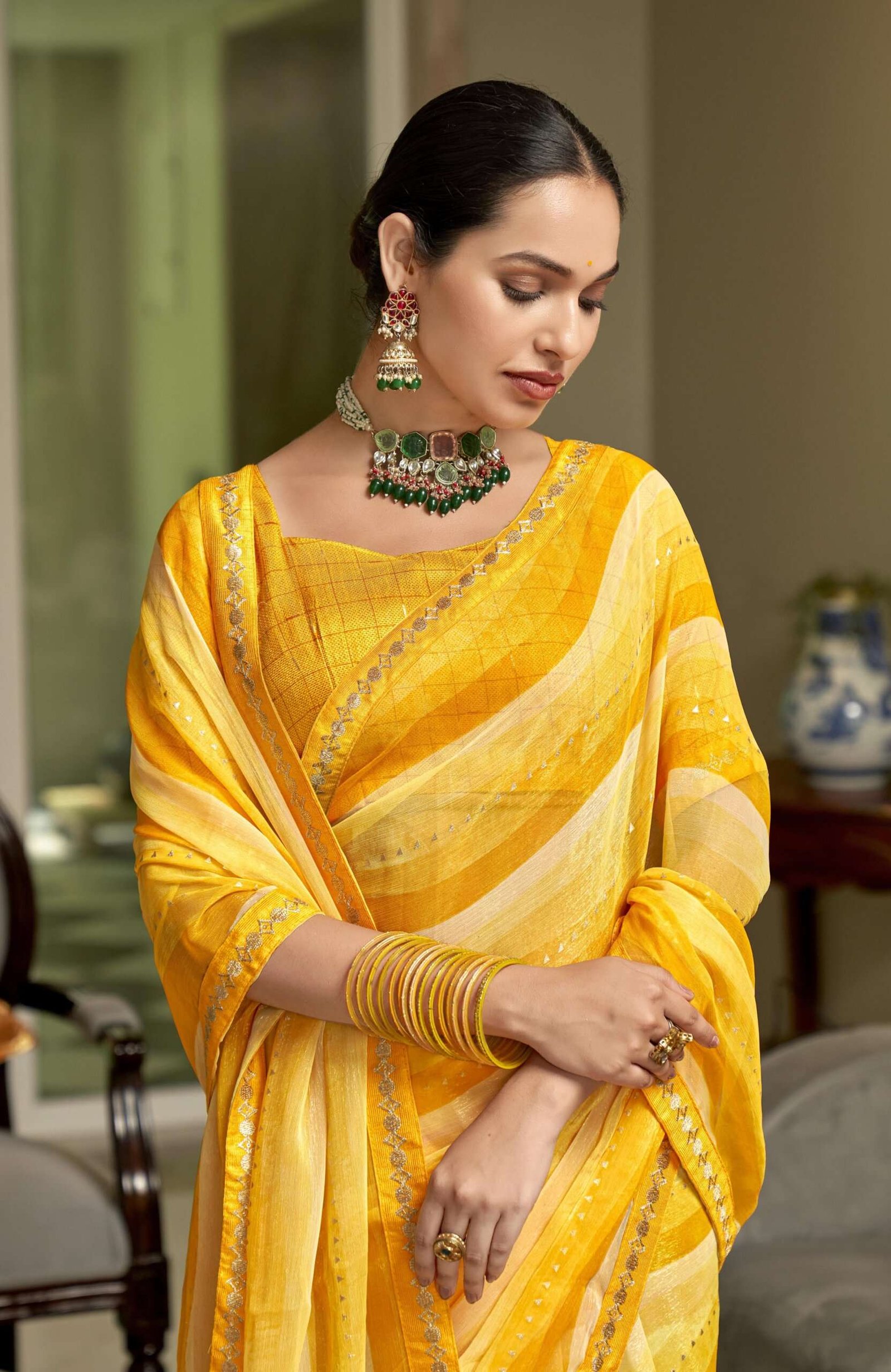 Printed Sarees: Agarwal Creation offers printed sarees with contemporary and traditional prints to reach a larger audience. These range from floral to geometric, paisley to abstract. It can be picked according to the mood of the person or event.