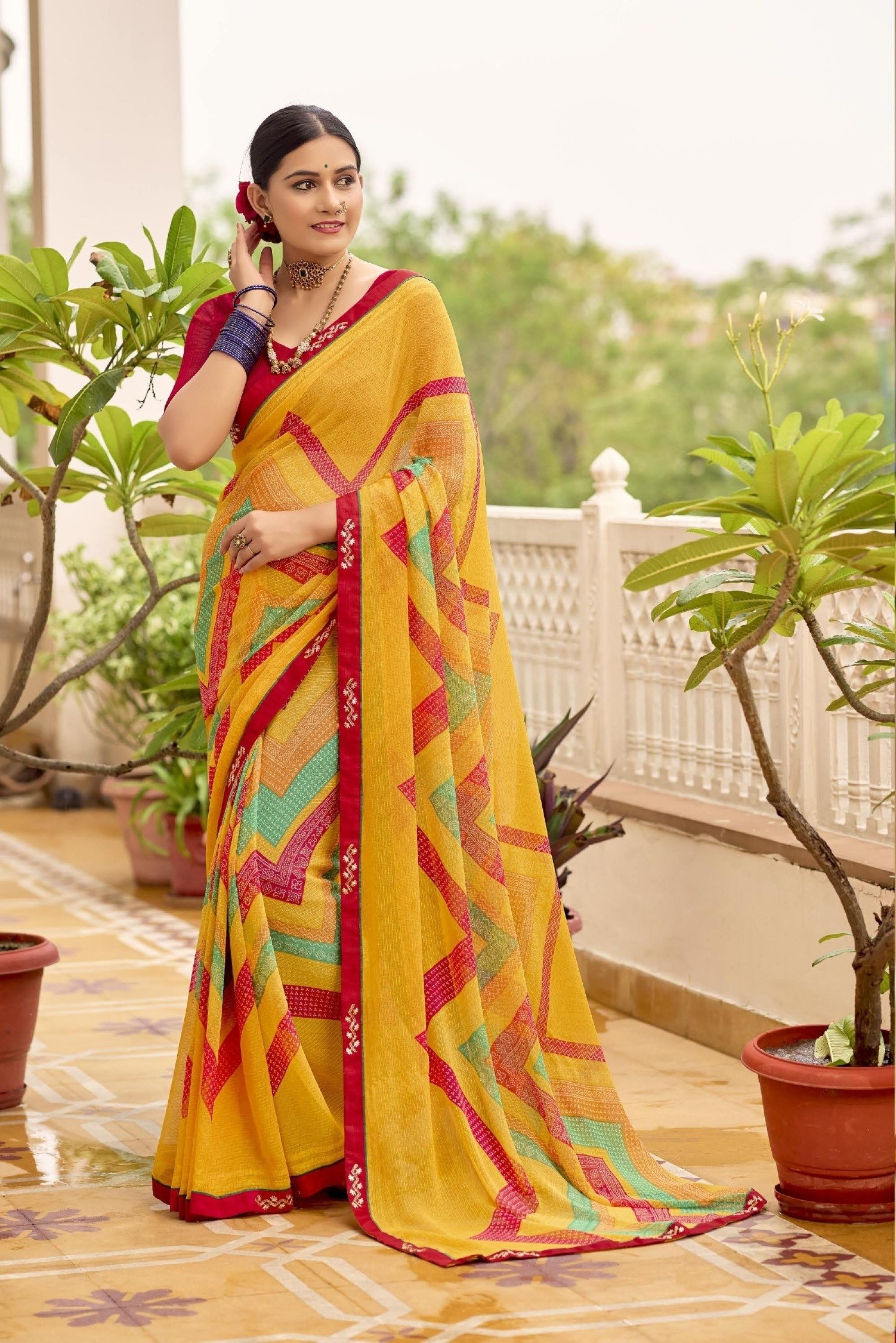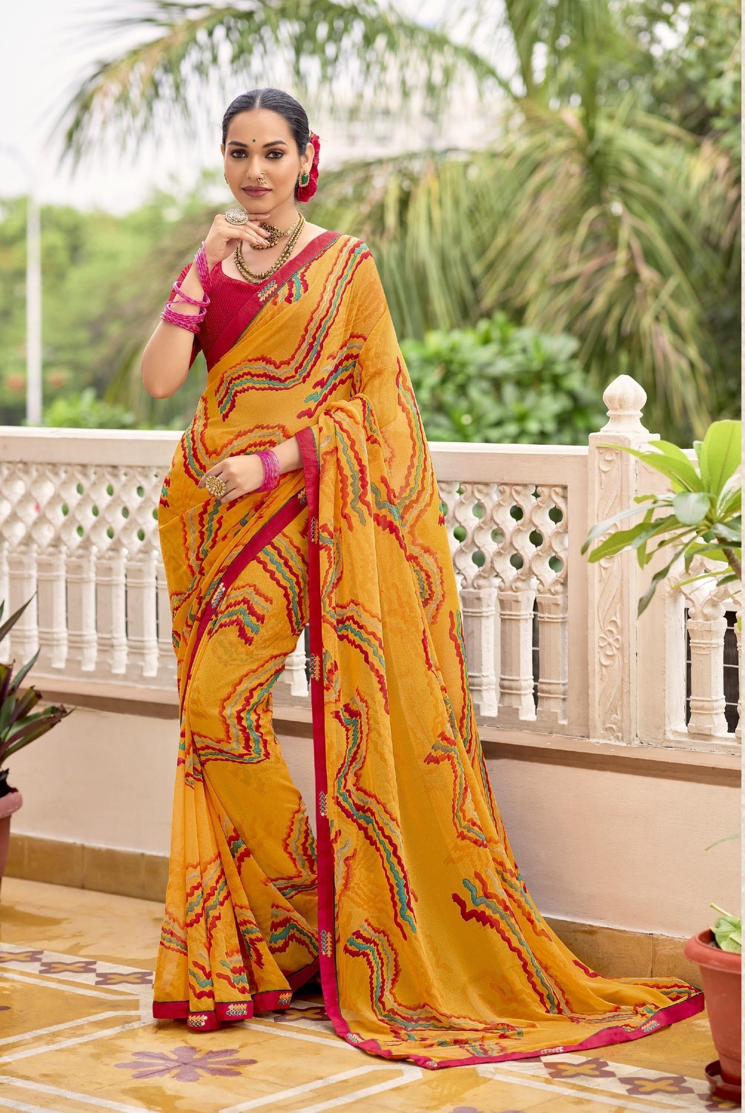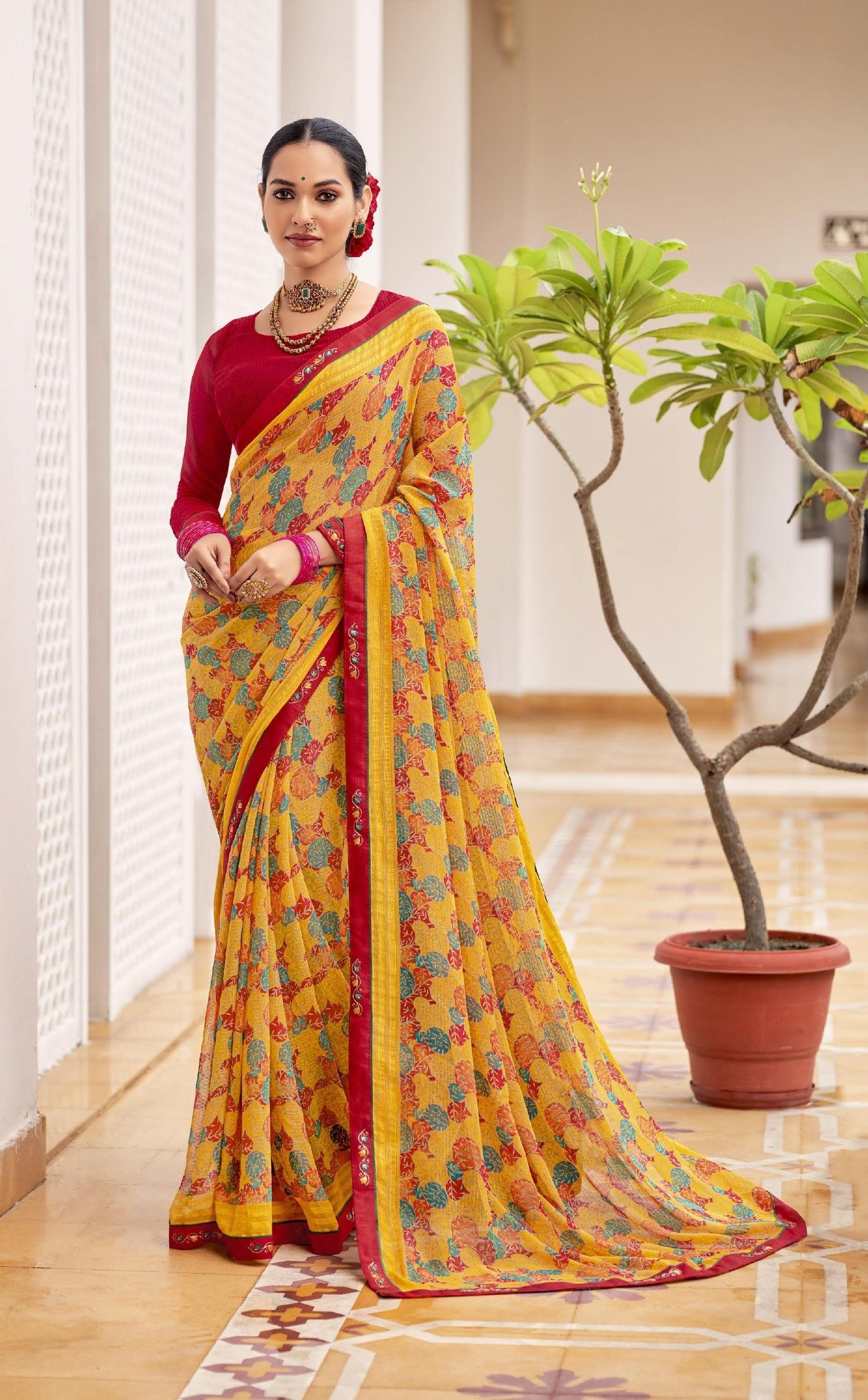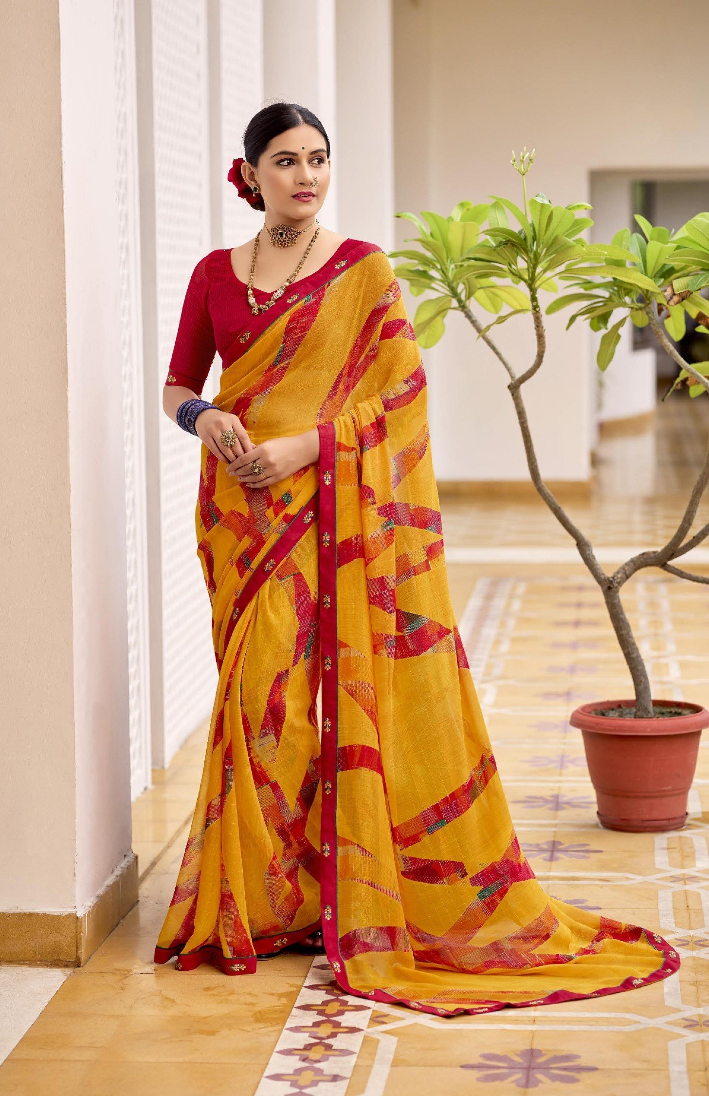Printed Sarees: Agarwal Creation offers printed sarees with contemporary and traditional prints to reach a larger audience. These range from floral to geometric, paisley to abstract. It can be picked according to the mood of the person or event.