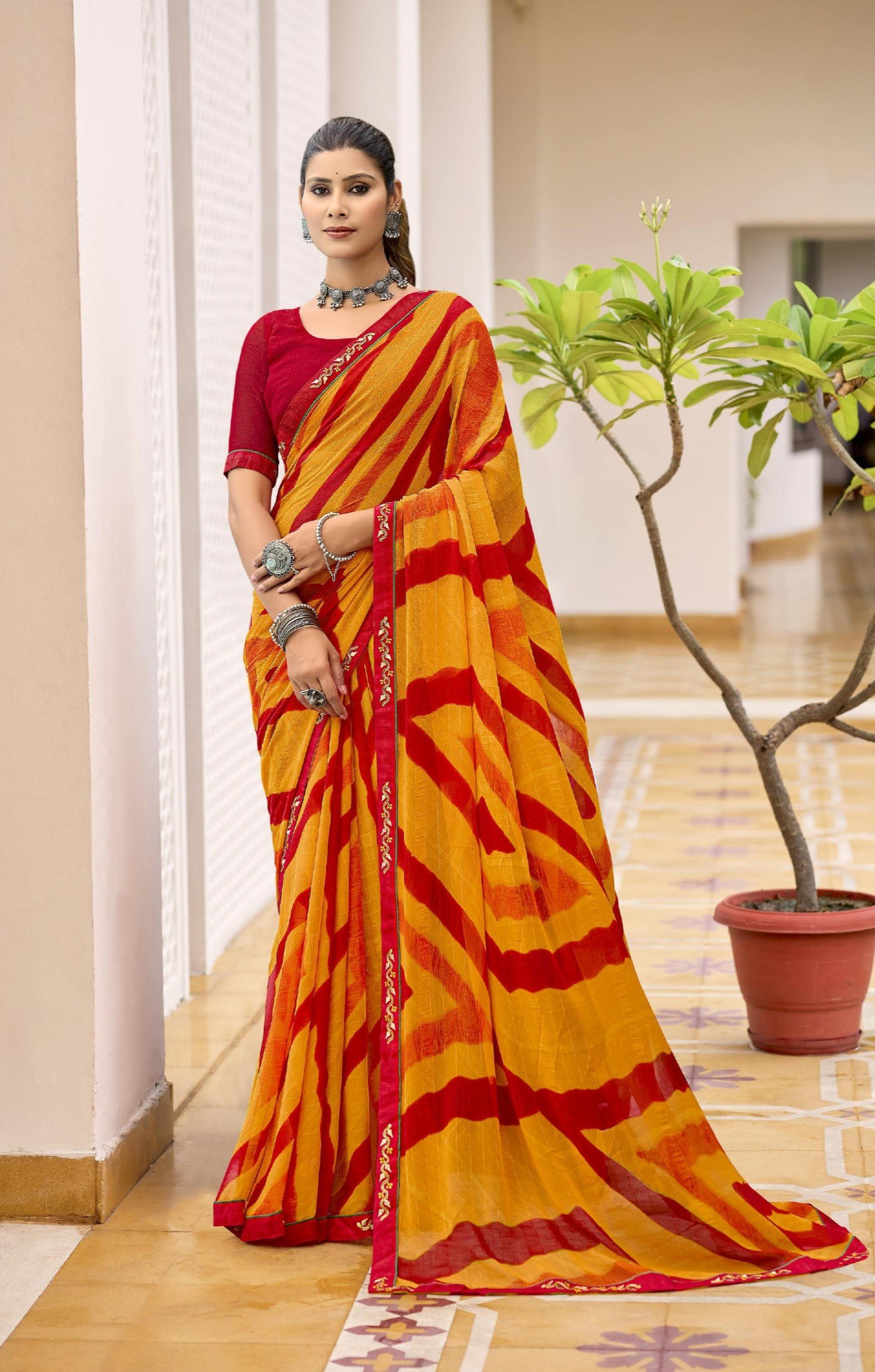 The manufacturing processes of the company are deeply rooted in traditional craftsmanship combined with modern technology. This fusion enables Agarwal Creation to create sarees that are not only beautiful but also comfortable and long-lasting. The company’s fabric selection is varied, ranging from the most luxurious silks to delicate chiffons and georgettes, offering customers a wide range of options to choose from for every occasion.