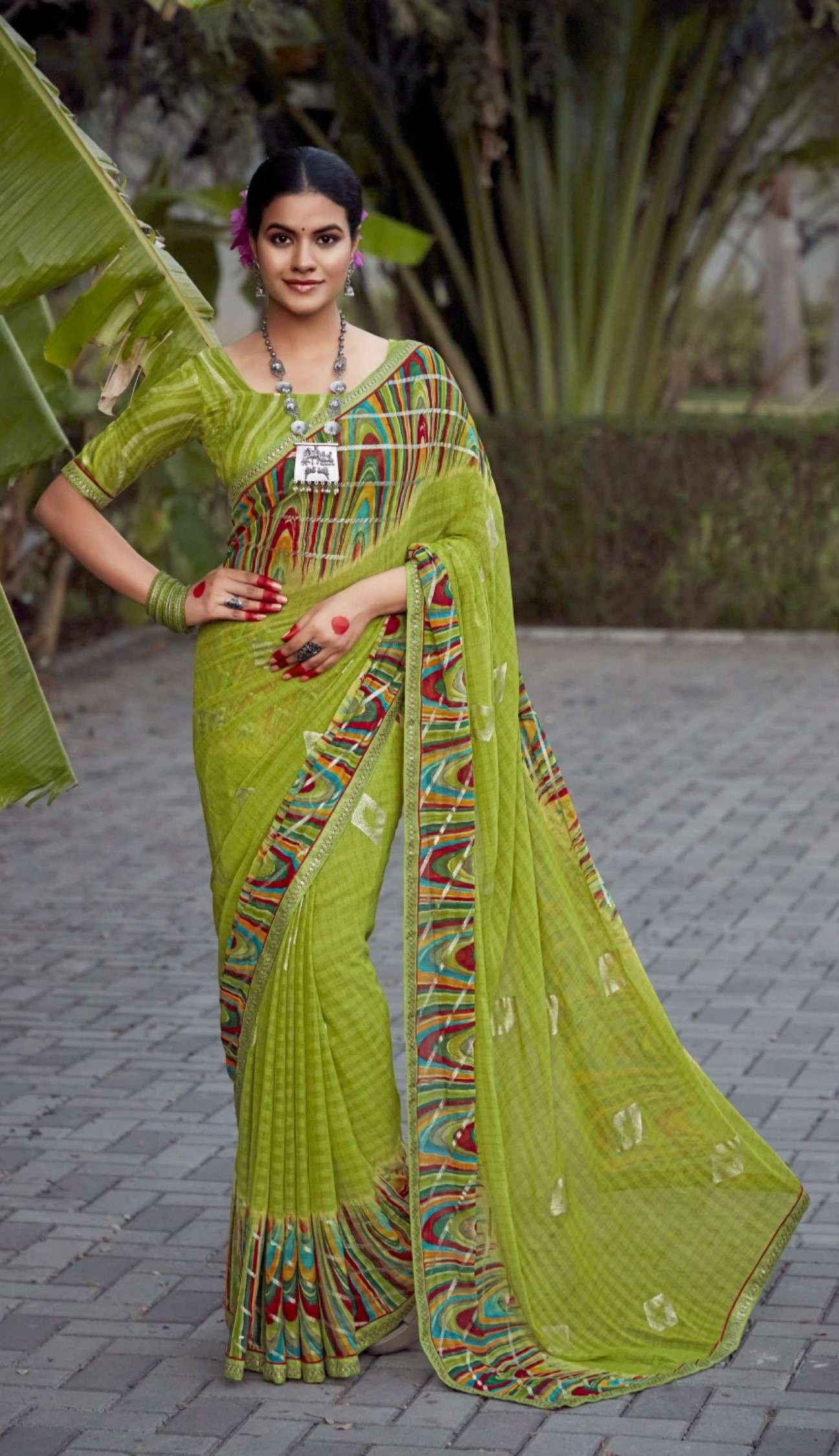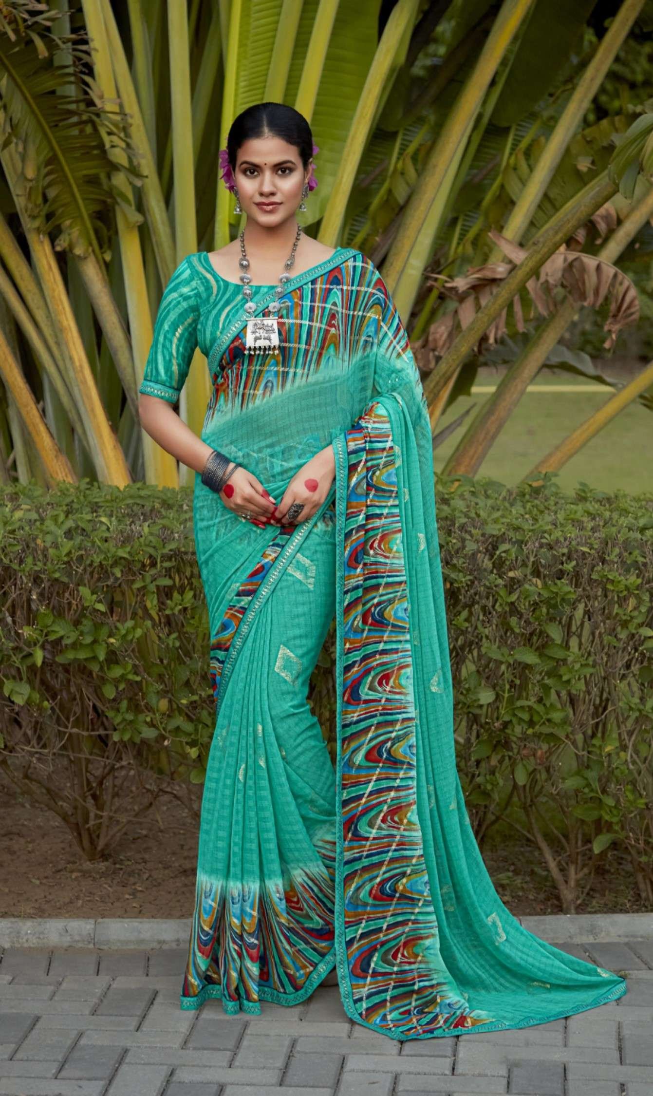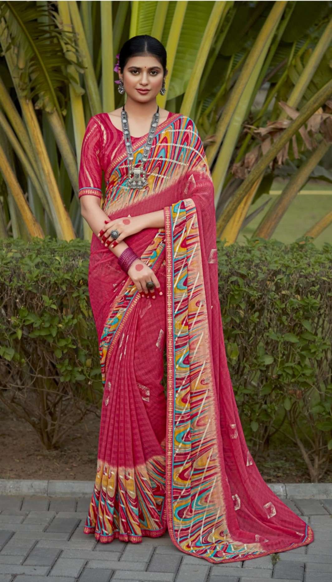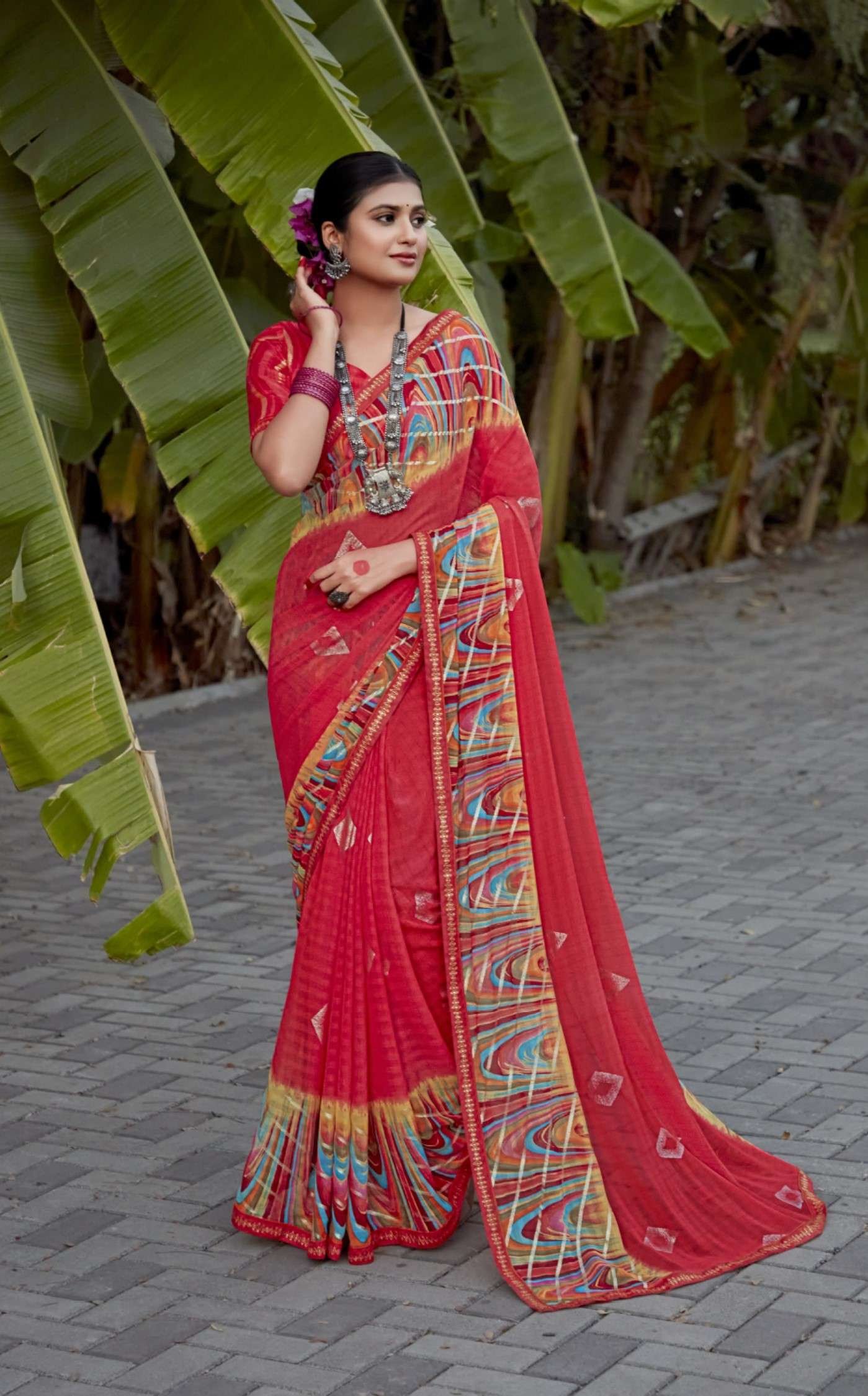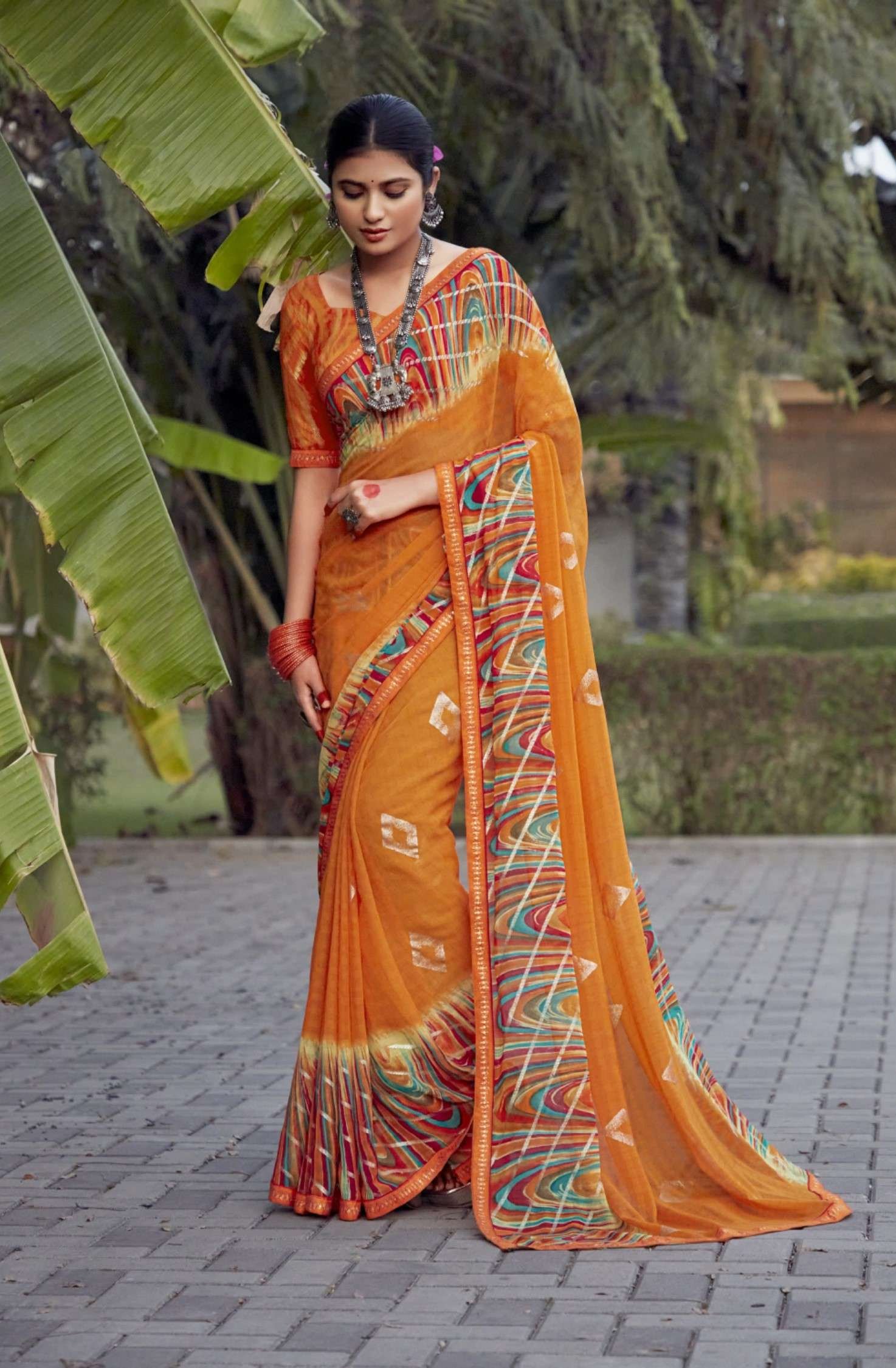 Printed Sarees: Agarwal Creation offers printed sarees with contemporary and traditional prints to reach a larger audience. These range from floral to geometric, paisley to abstract. It can be picked according to the mood of the person or event.