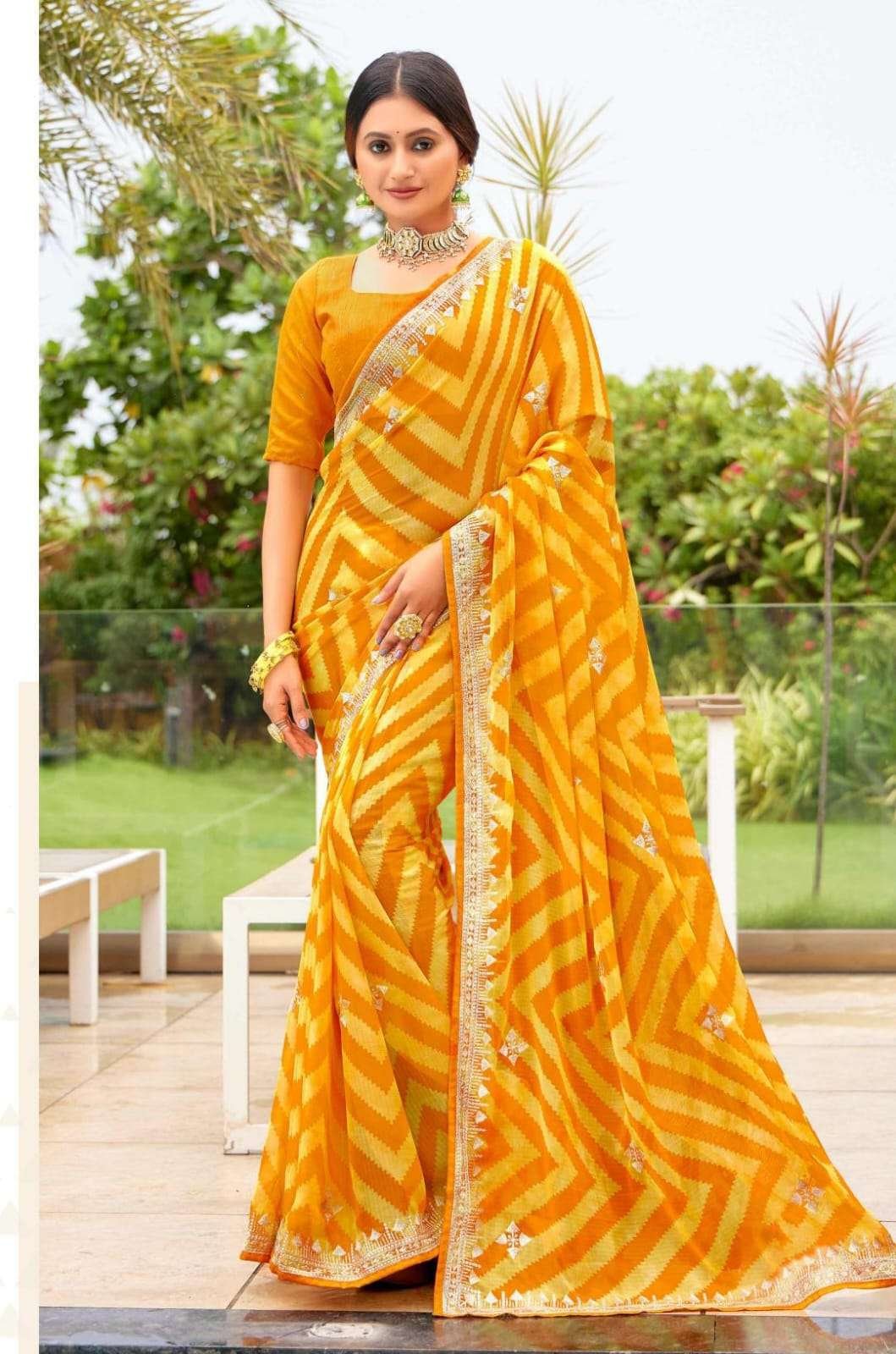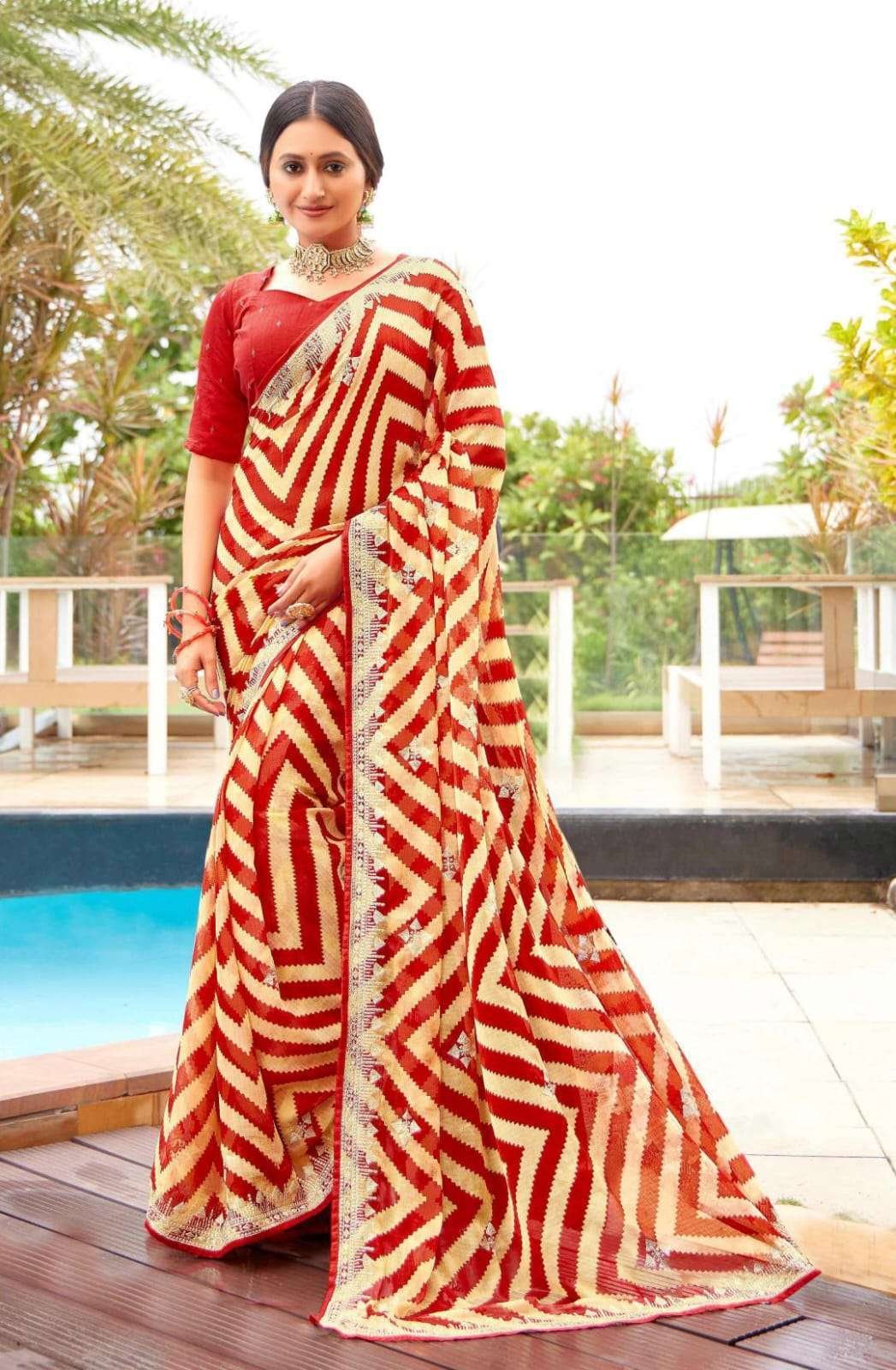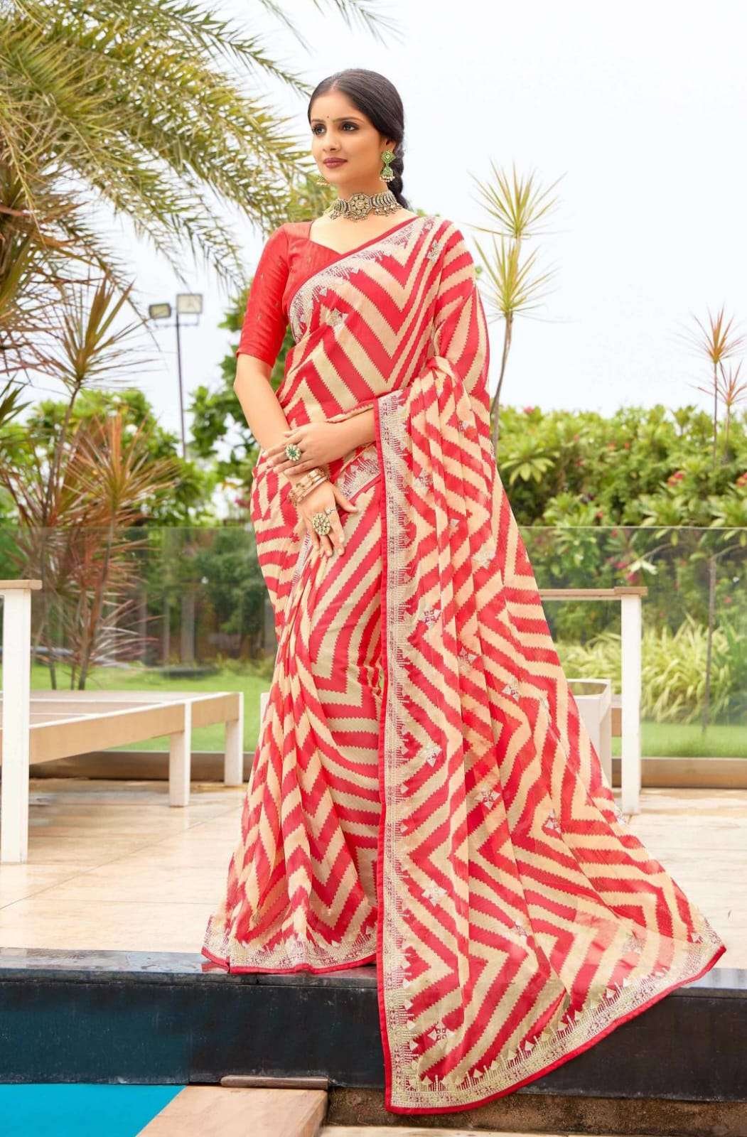 Printed Sarees: Agarwal Creation offers printed sarees with contemporary and traditional prints to reach a larger audience. These range from floral to geometric, paisley to abstract. It can be picked according to the mood of the person or event.