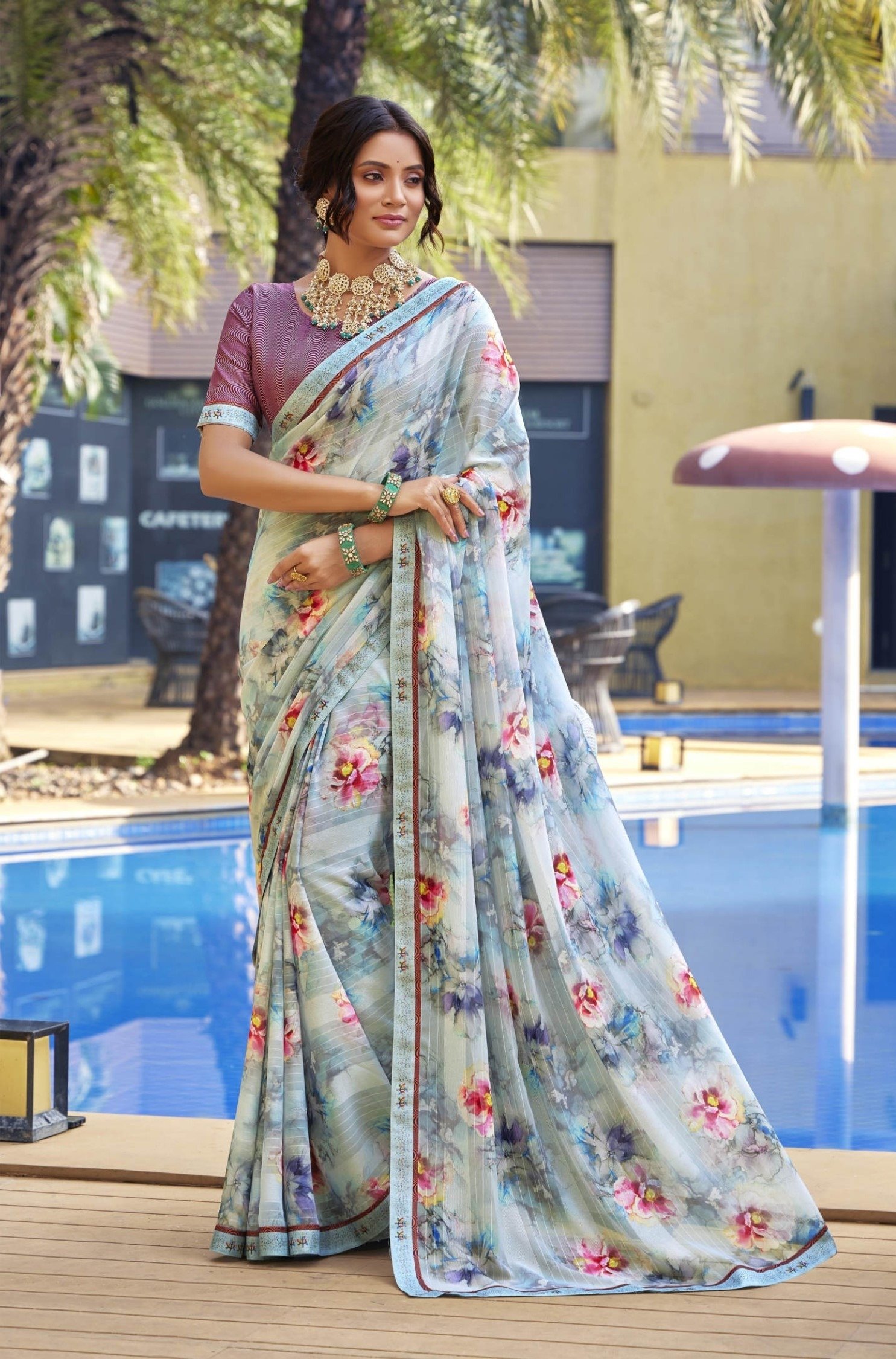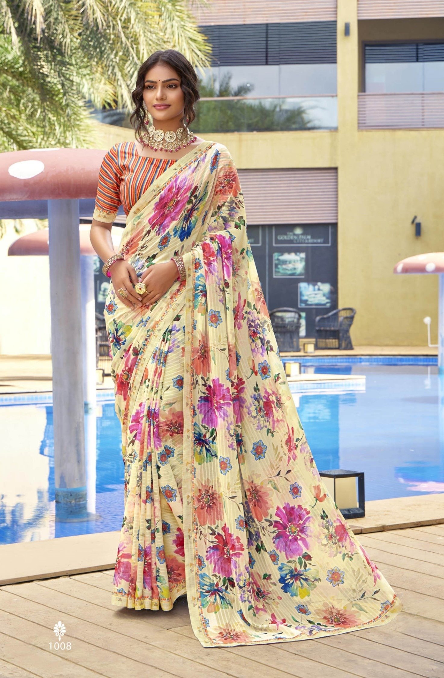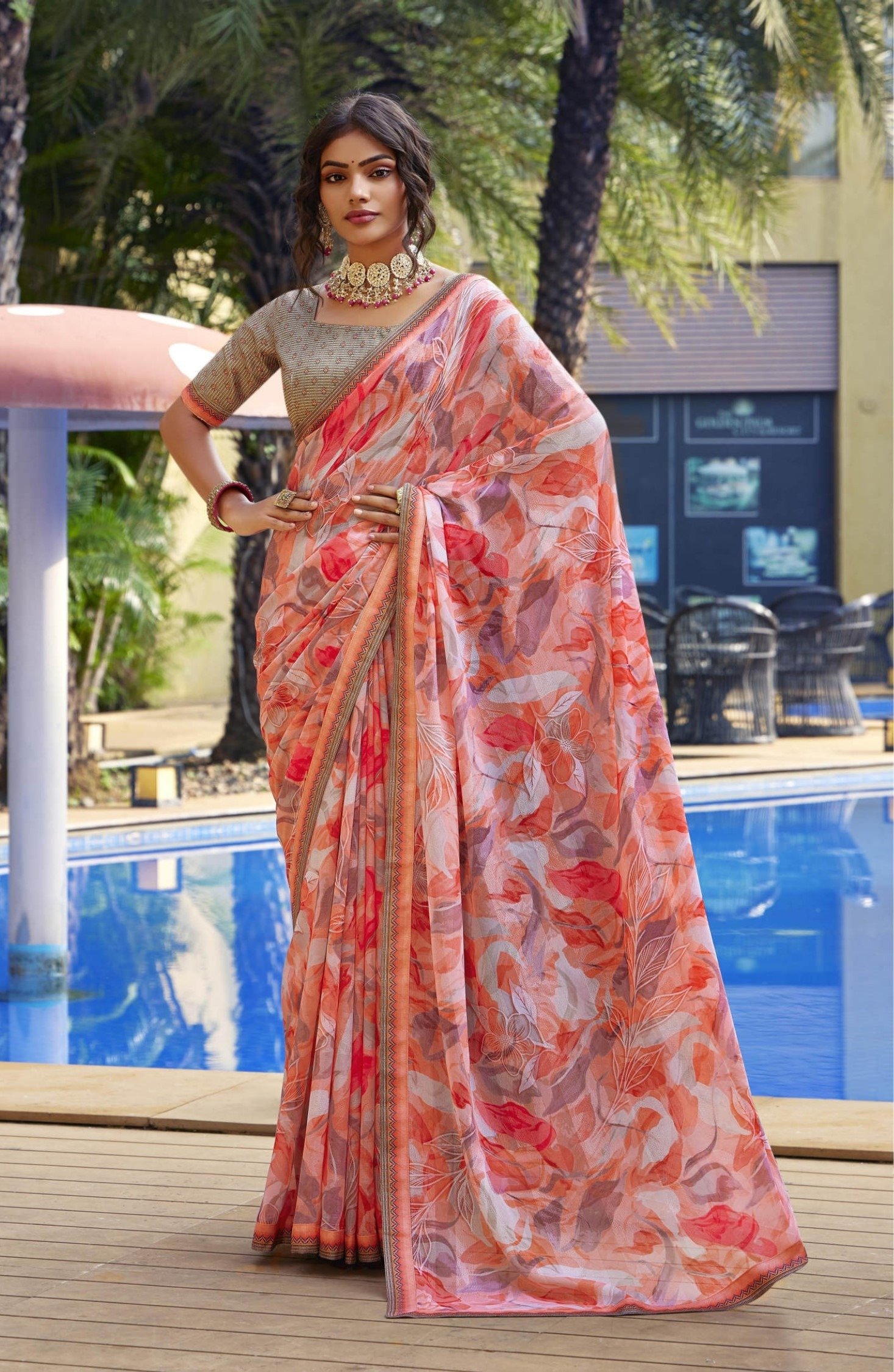 Printed Sarees: Agarwal Creation offers printed sarees with contemporary and traditional prints to reach a larger audience. These range from floral to geometric, paisley to abstract. It can be picked according to the mood of the person or event.