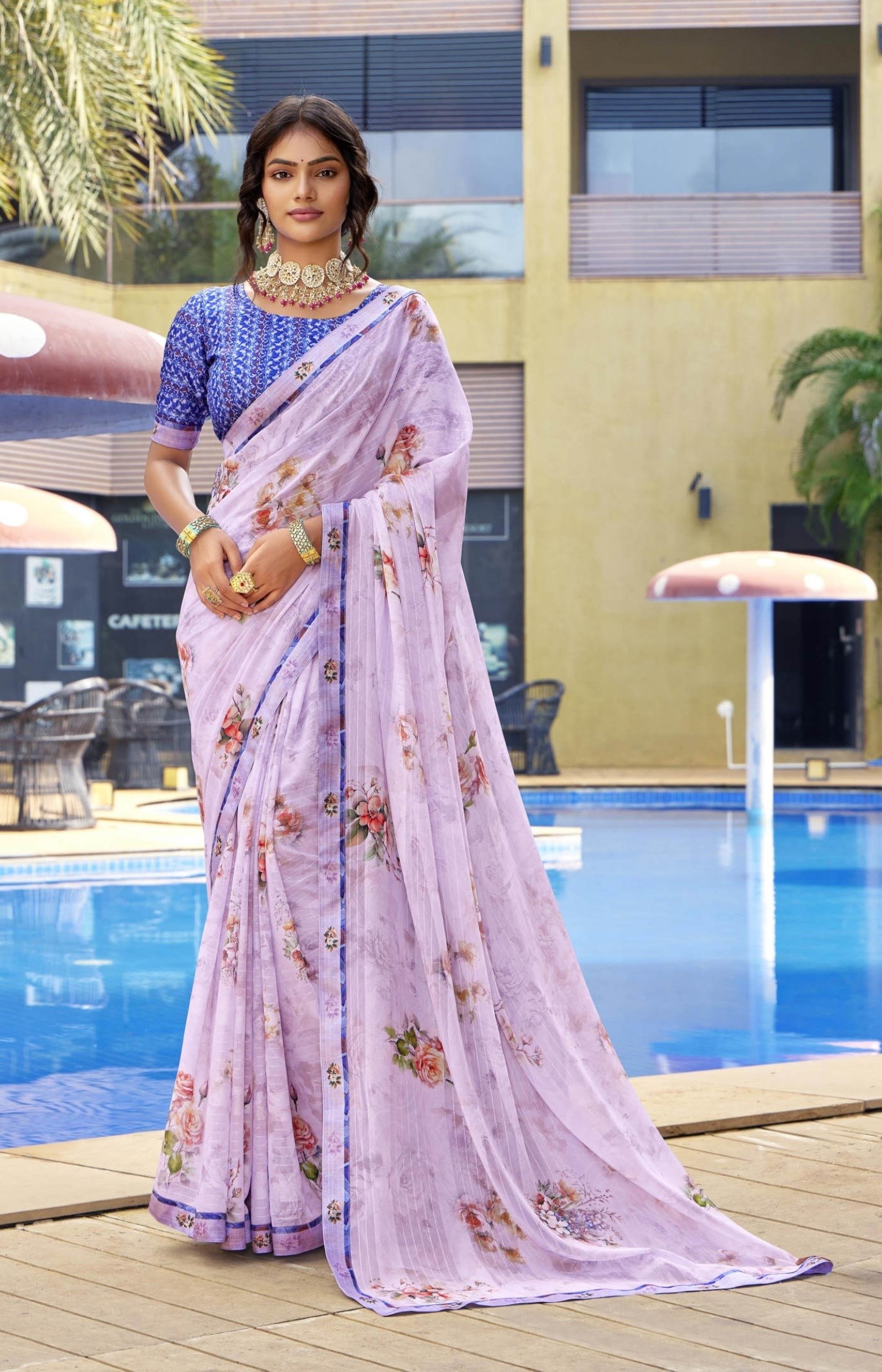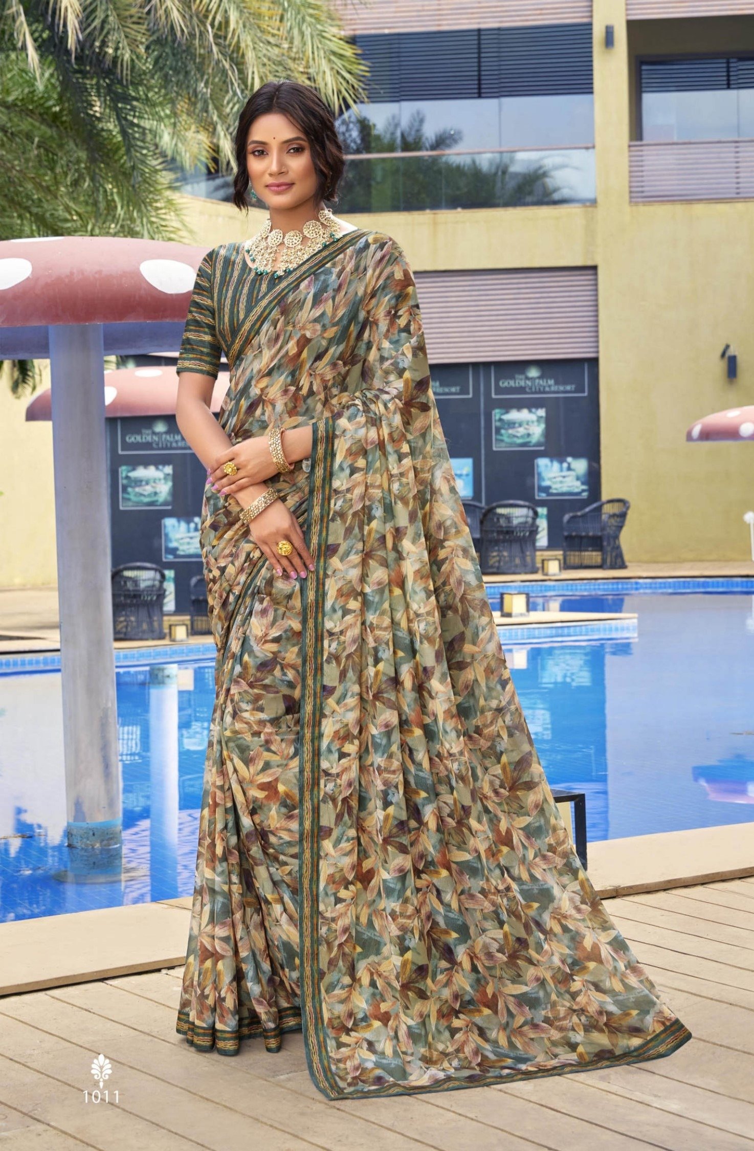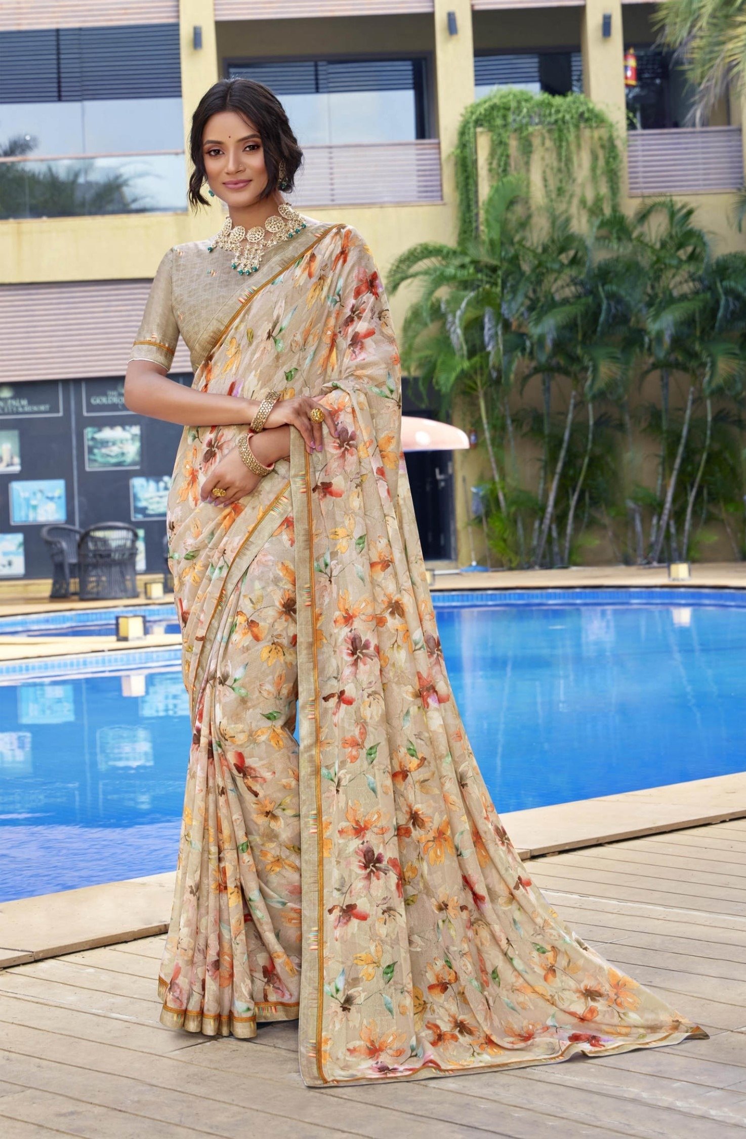 Printed Sarees: Agarwal Creation offers printed sarees with contemporary and traditional prints to reach a larger audience. These range from floral to geometric, paisley to abstract. It can be picked according to the mood of the person or event.