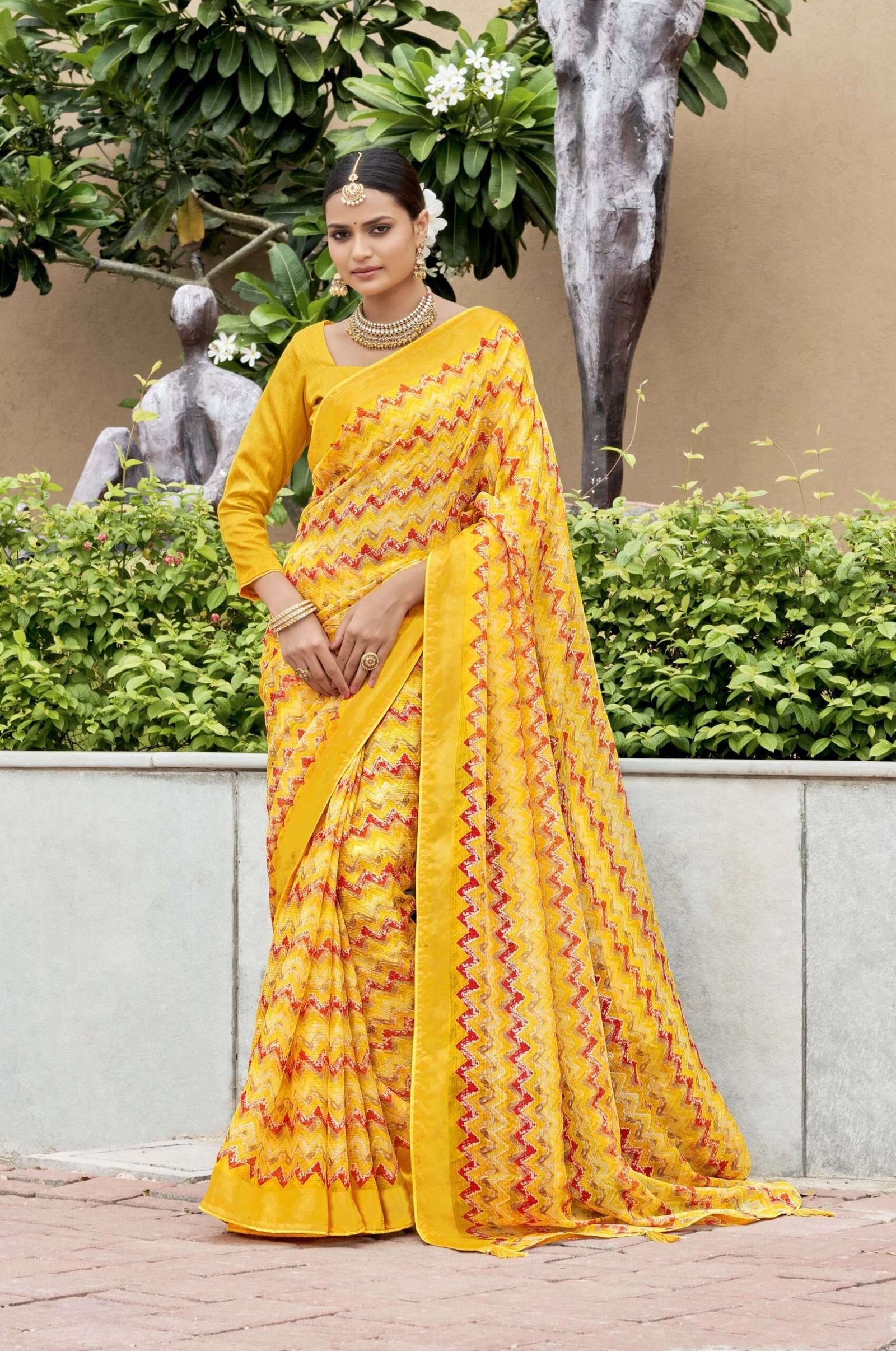 Printed Sarees: Agarwal Creation offers printed sarees with contemporary and traditional prints to reach a larger audience. These range from floral to geometric, paisley to abstract. It can be picked according to the mood of the person or event.