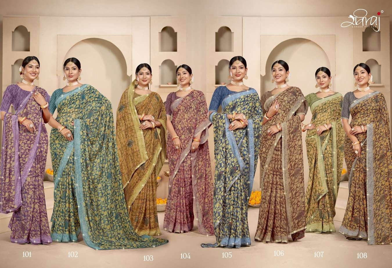 We, at Agarwal Creation Fashions Pvt. Ltd., make sure that each Raviraj Raag 84 Saree has quality to its maximum extent. It is elegantly designed with the finest quality fabric and rich finish. The beauty of this saree makes a statement about one’s sense of fashion for life.