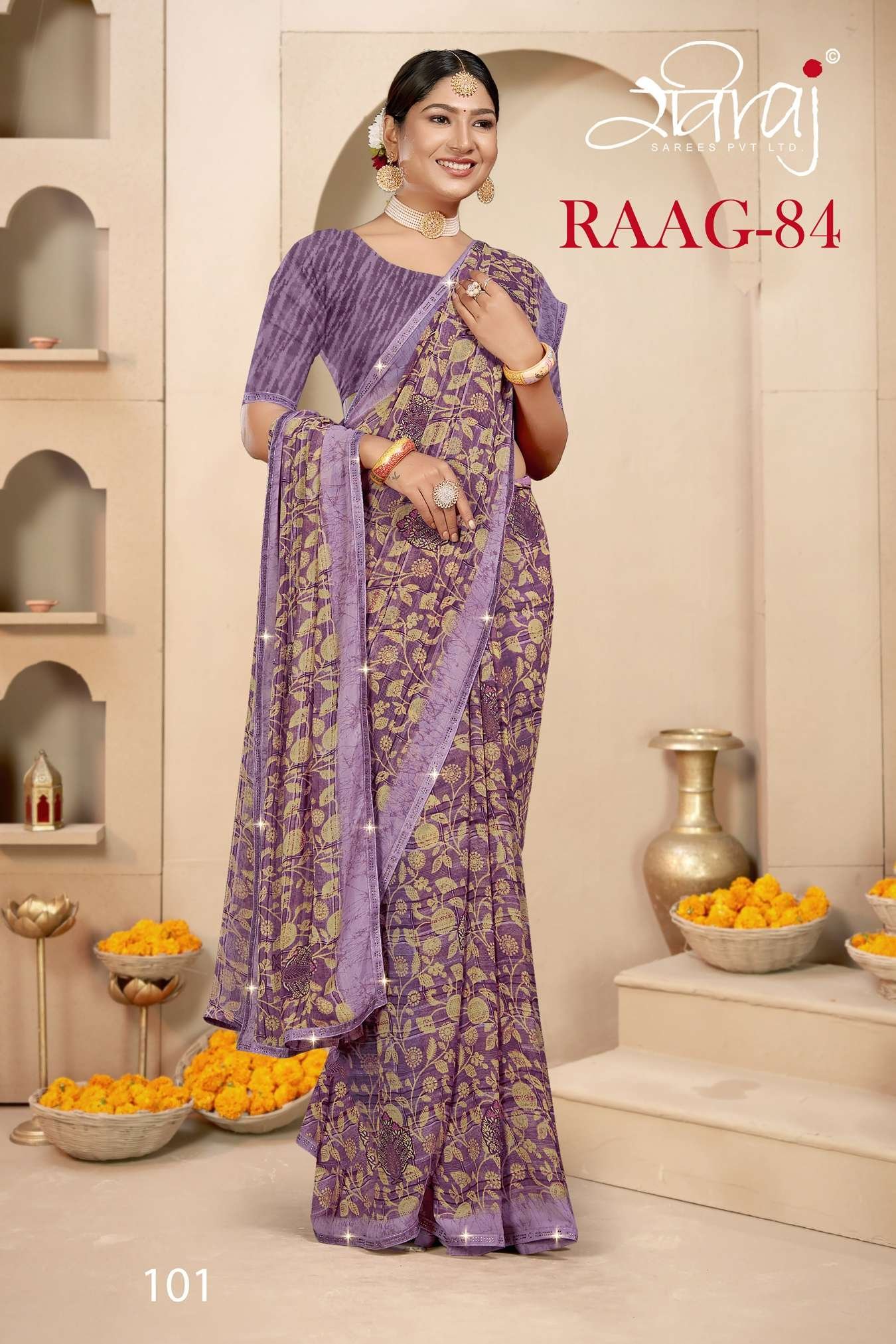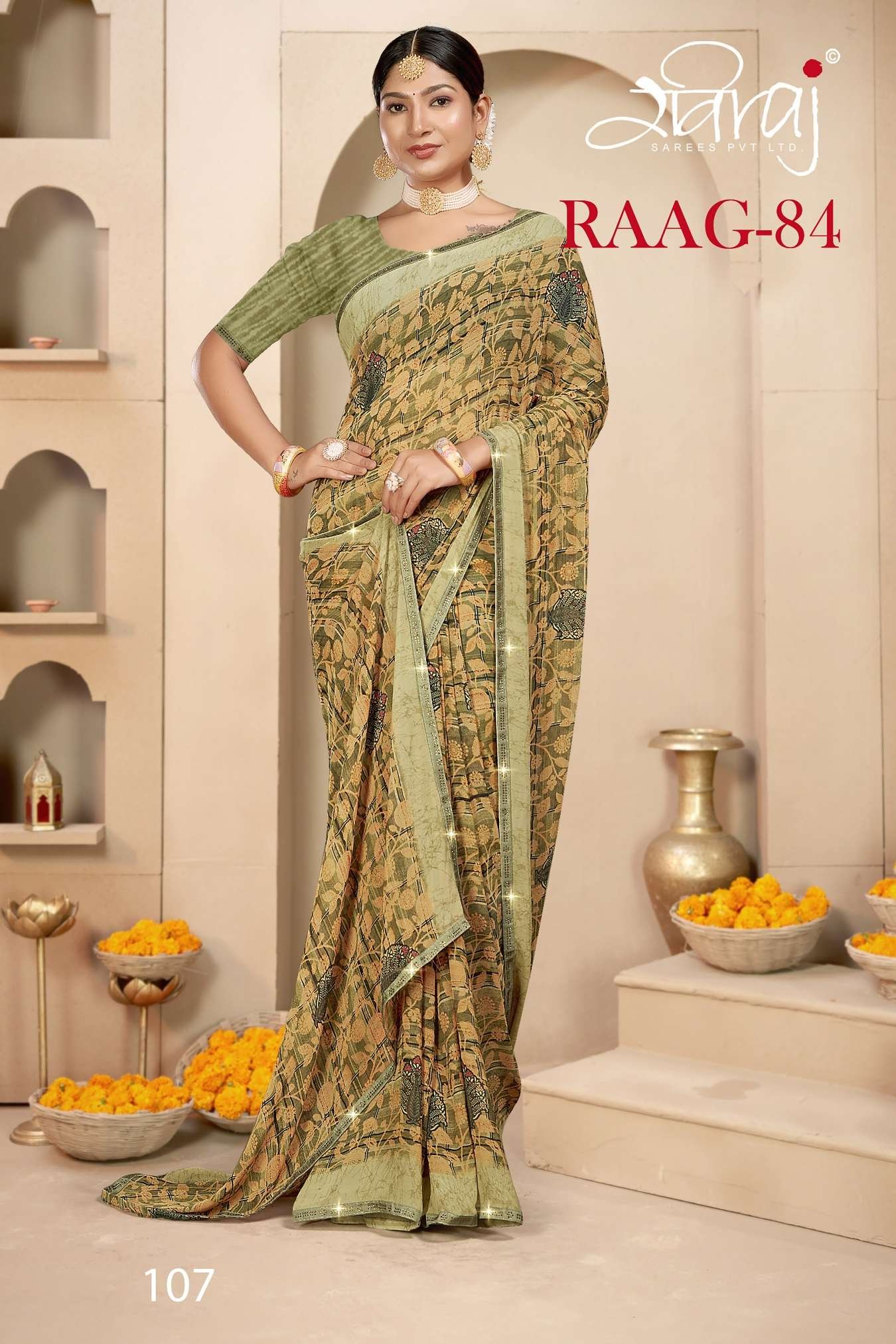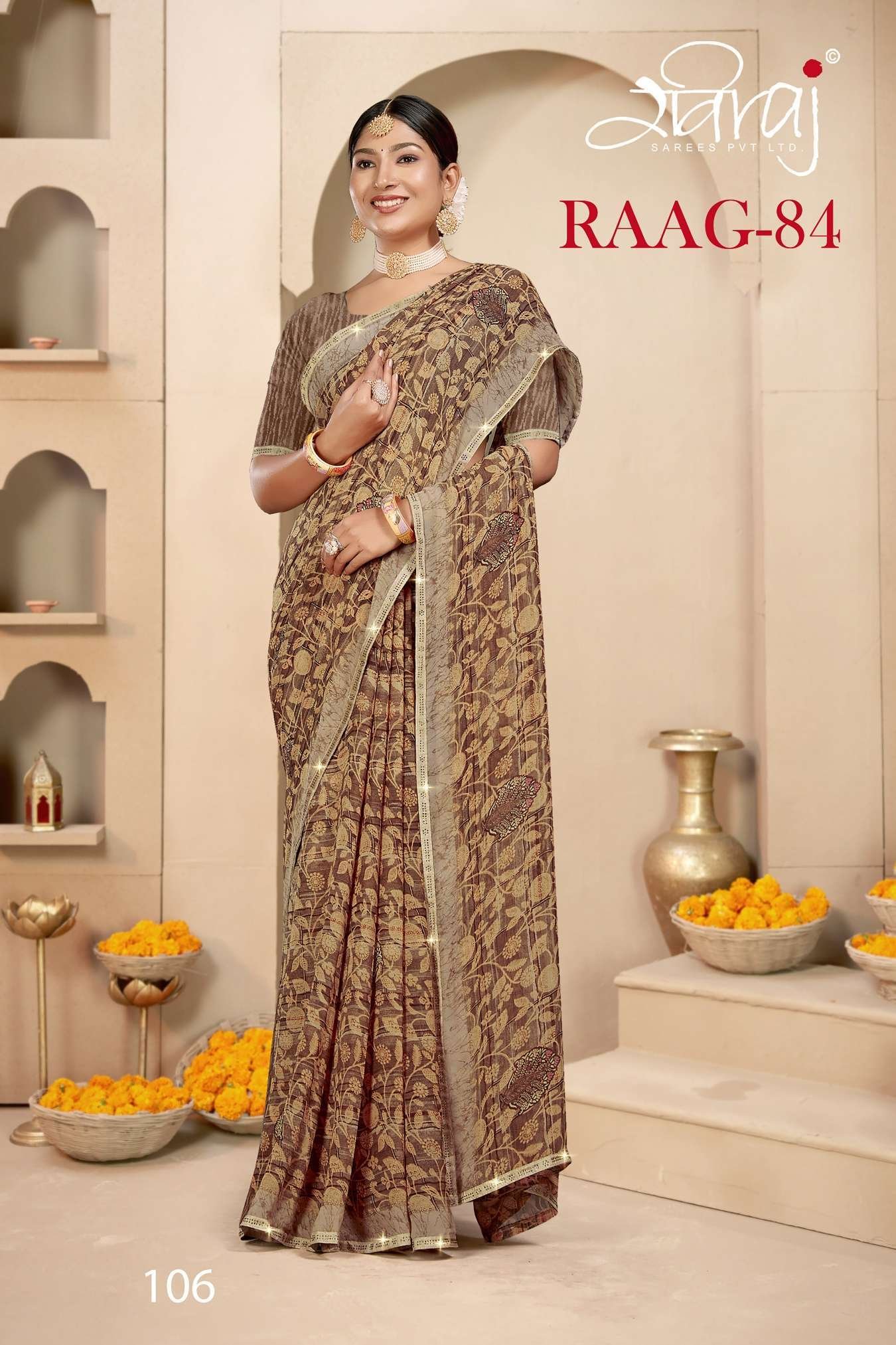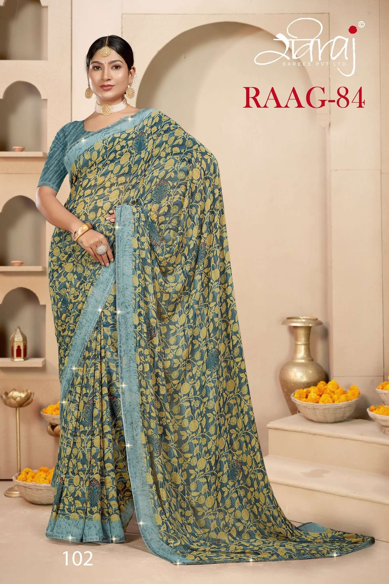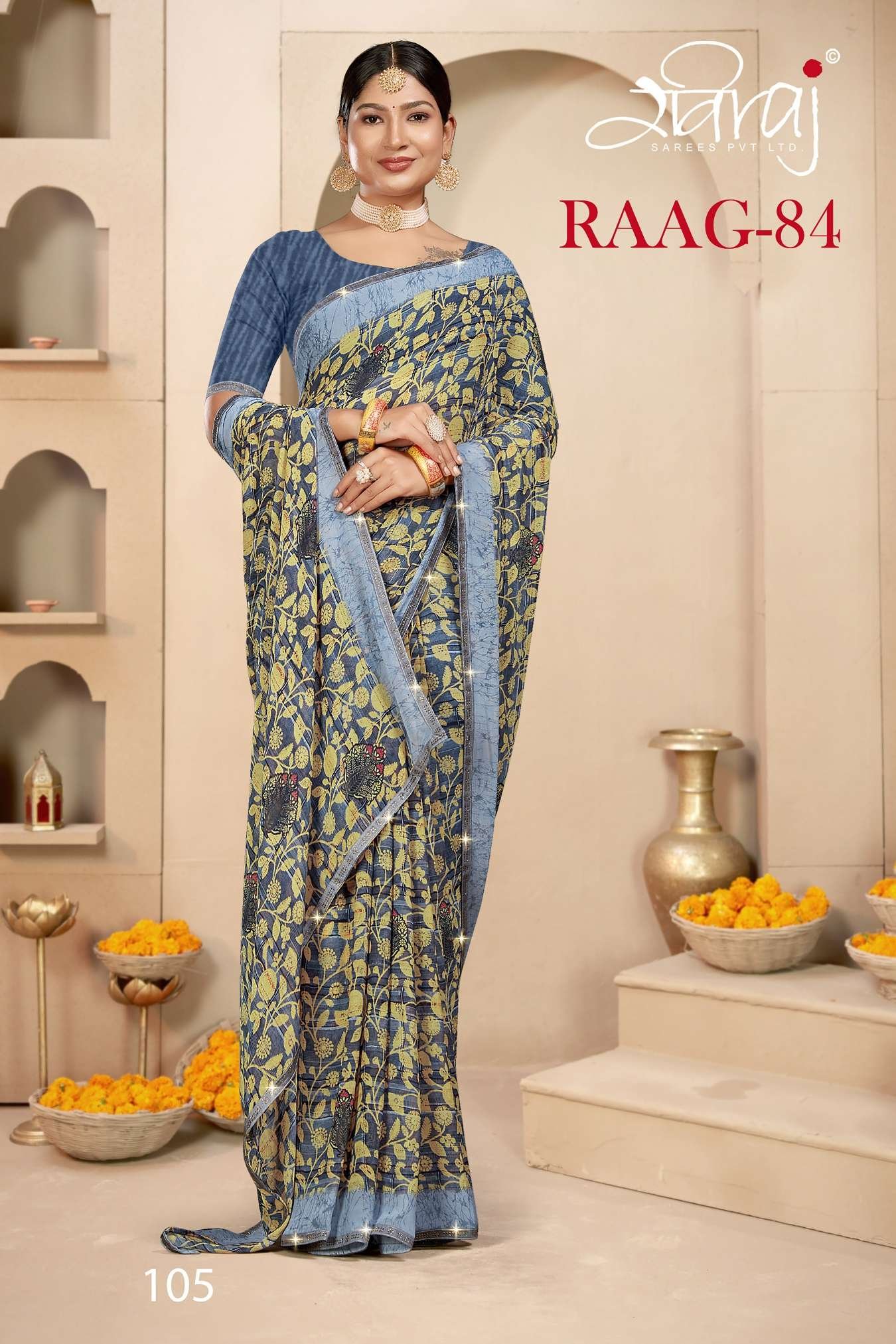 The saree has fine craftsmanship, providing a smooth drape and a comfortable fit. The Raviraj Raag 84 Saree reflects a harmonious fusion of tradition and contemporary design, creating a versatile piece that can be styled for various events. Whether paired with traditional jewelry for a classic look or modern accessories for a contemporary touch, this saree is sure to turn heads.