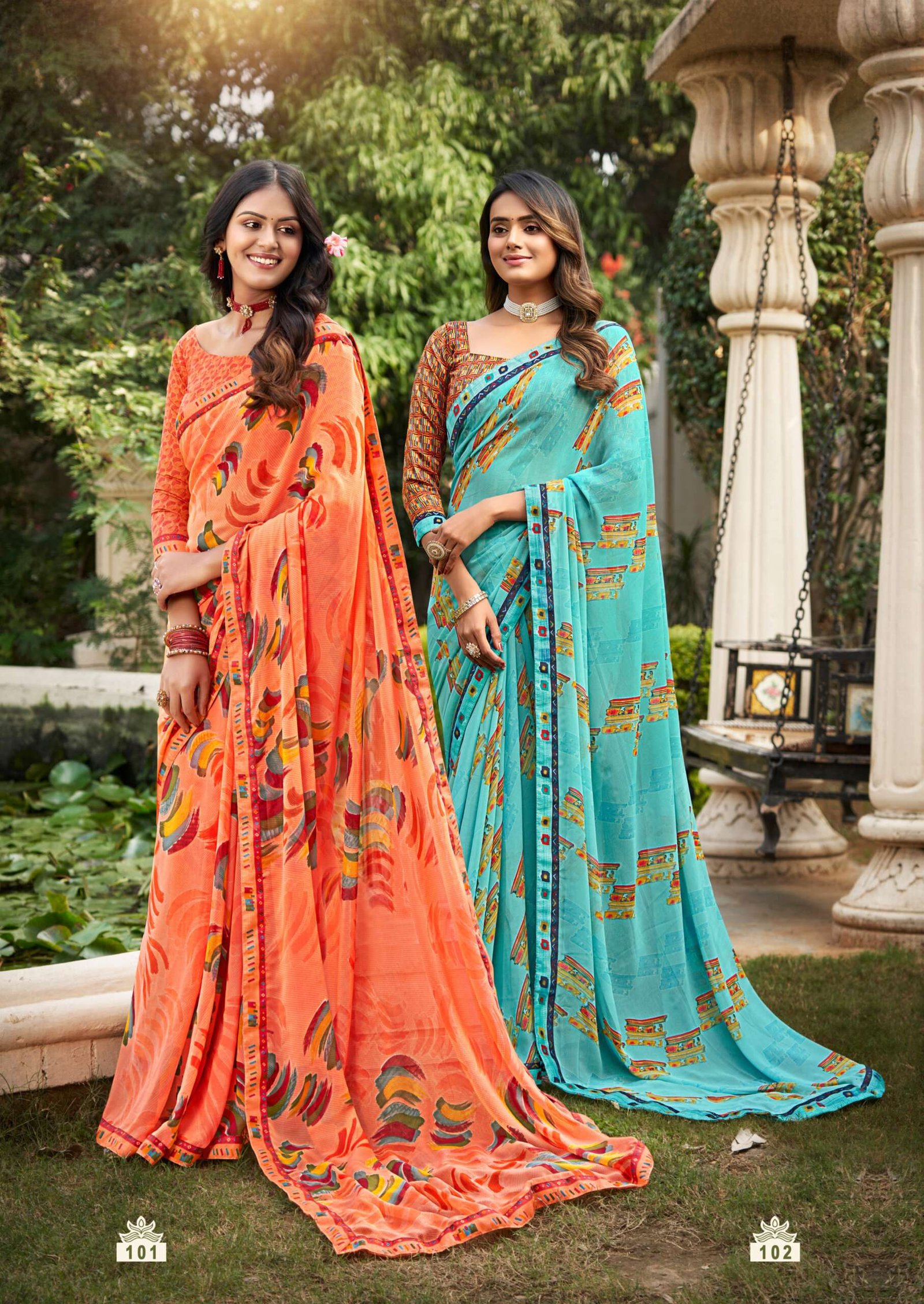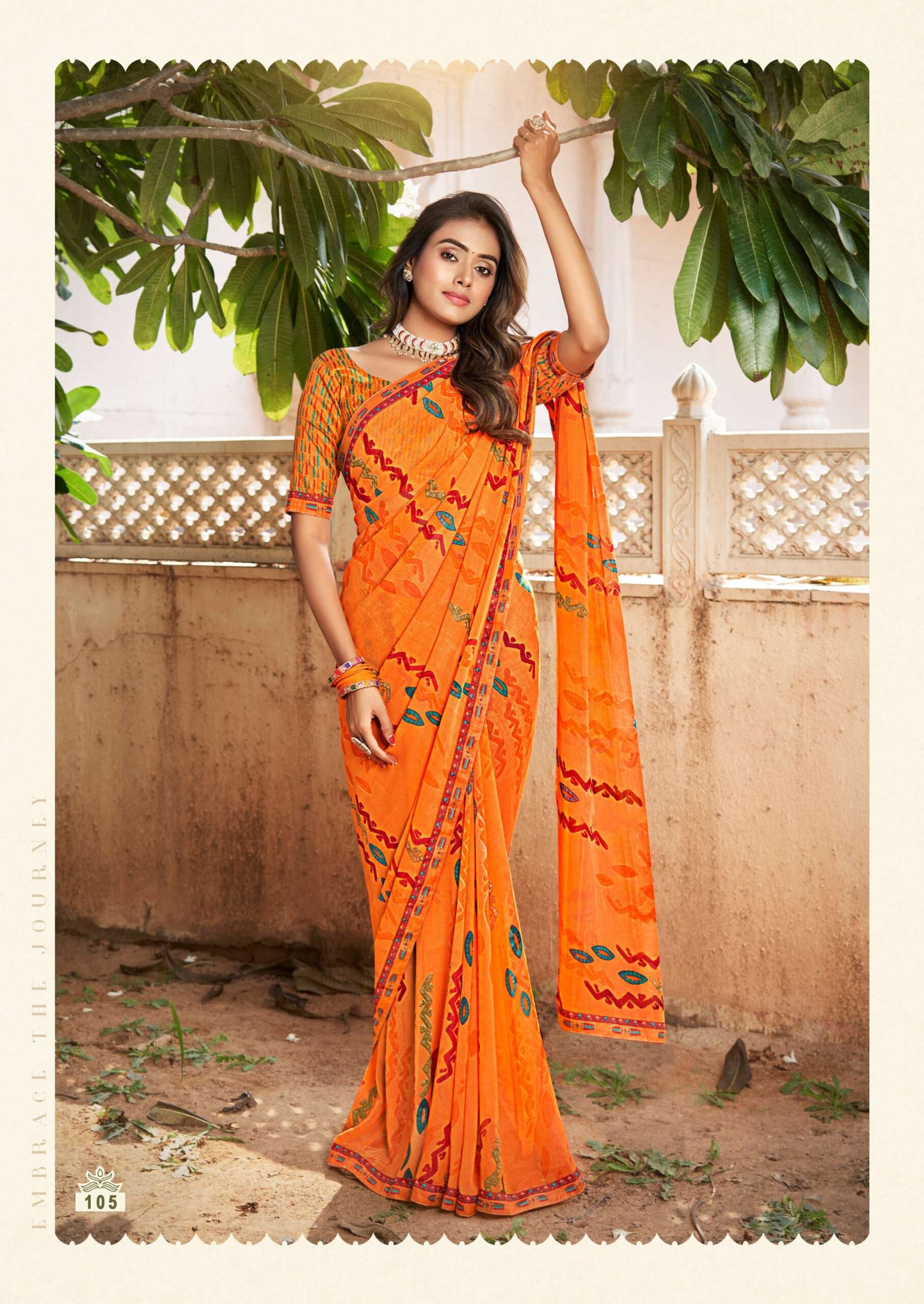 Printed Sarees: Agarwal Creation offers printed sarees with contemporary and traditional prints to reach a larger audience. These range from floral to geometric, paisley to abstract. It can be picked according to the mood of the person or event.