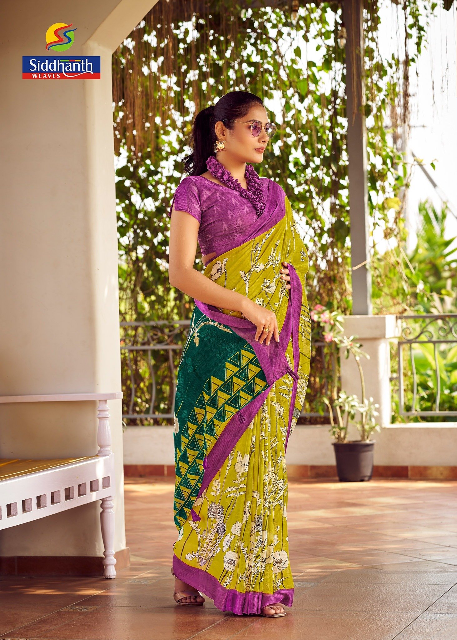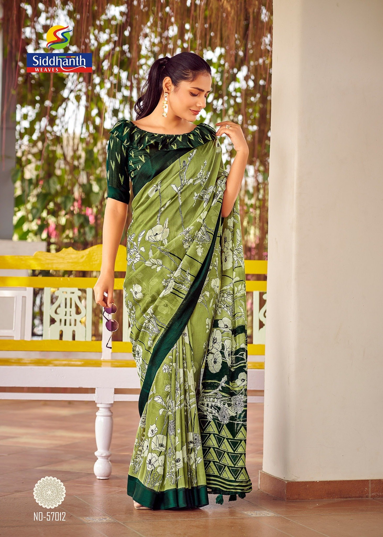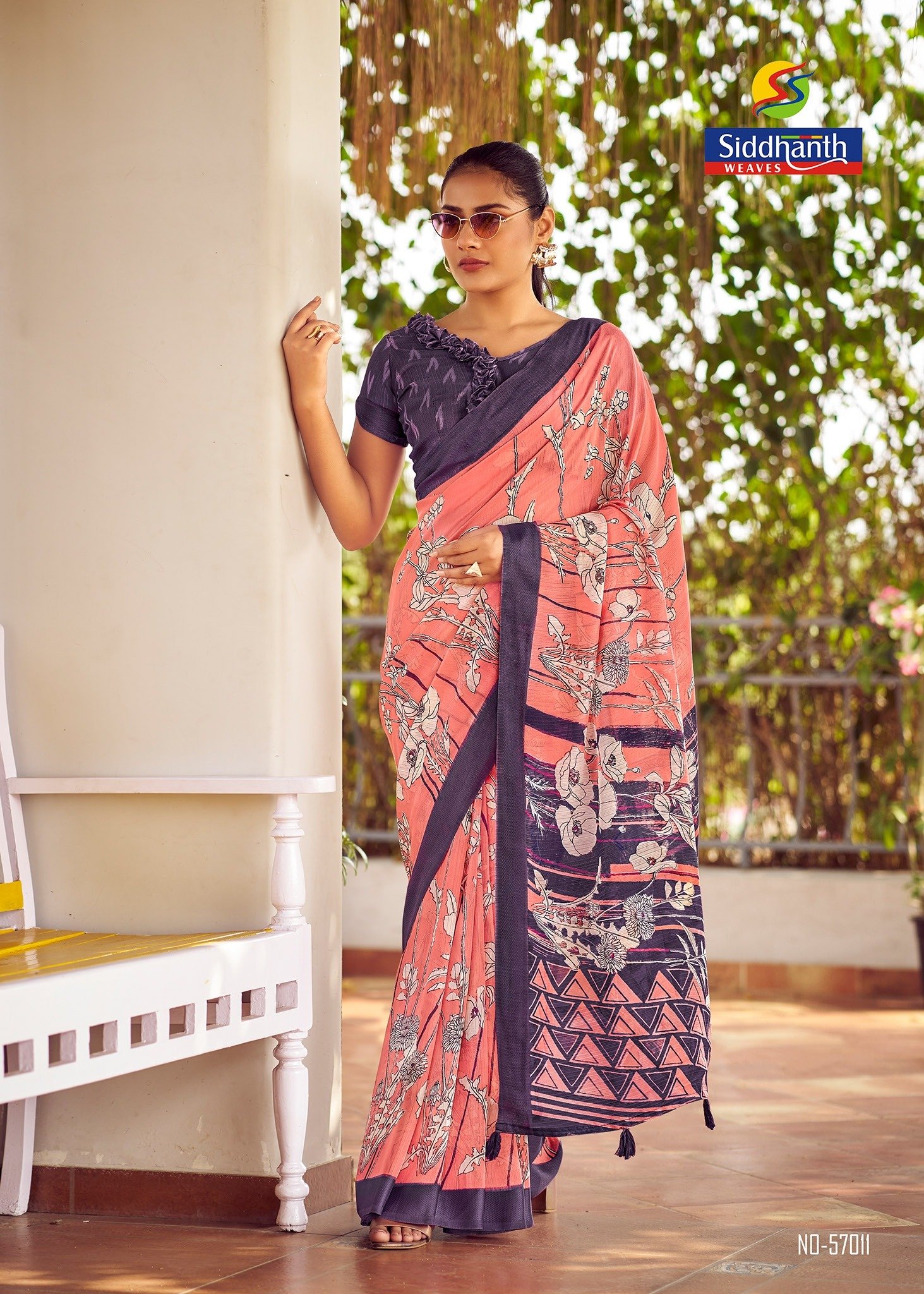 Printed Sarees: Agarwal Creation offers printed sarees with contemporary and traditional prints to reach a larger audience. These range from floral to geometric, paisley to abstract. It can be picked according to the mood of the person or event.