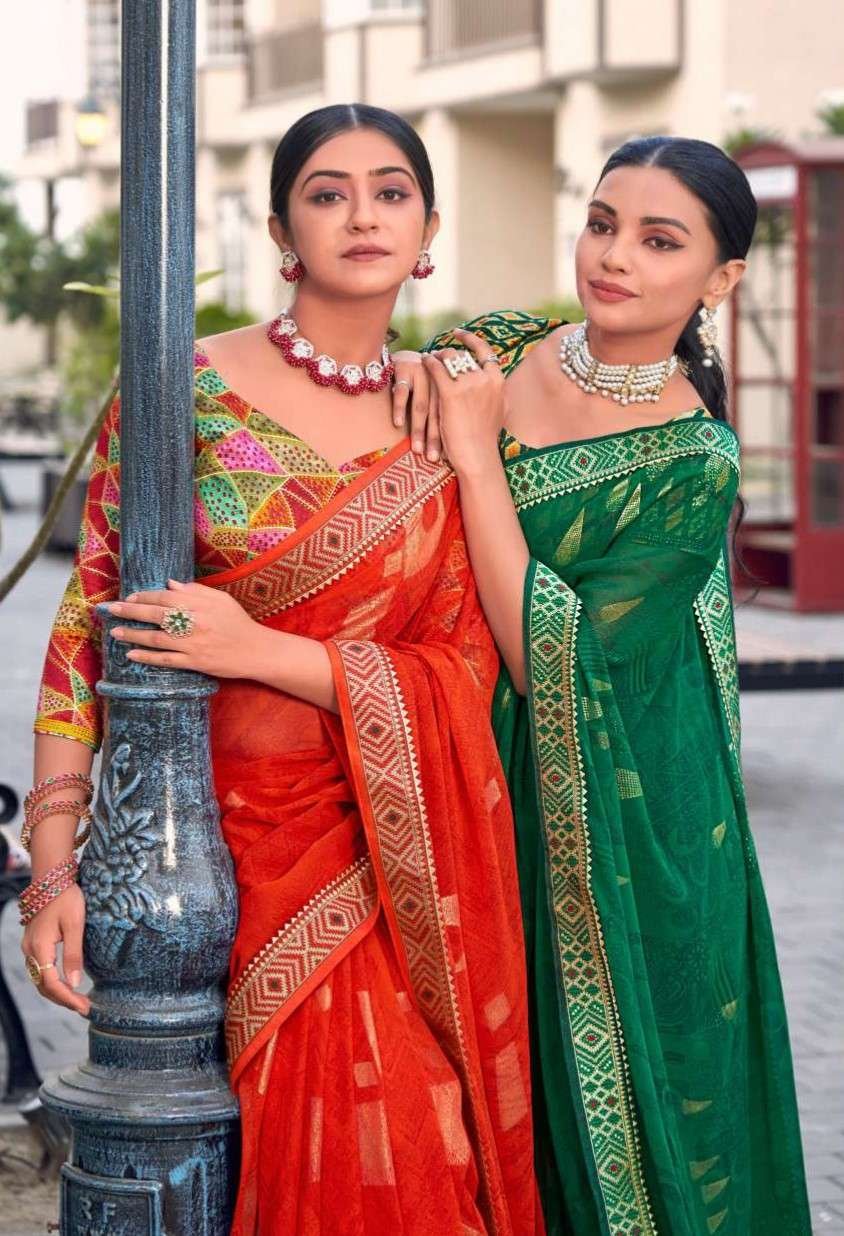 Printed Sarees: Agarwal Creation offers printed sarees with contemporary and traditional prints to reach a larger audience. These range from floral to geometric, paisley to abstract. It can be picked according to the mood of the person or event.