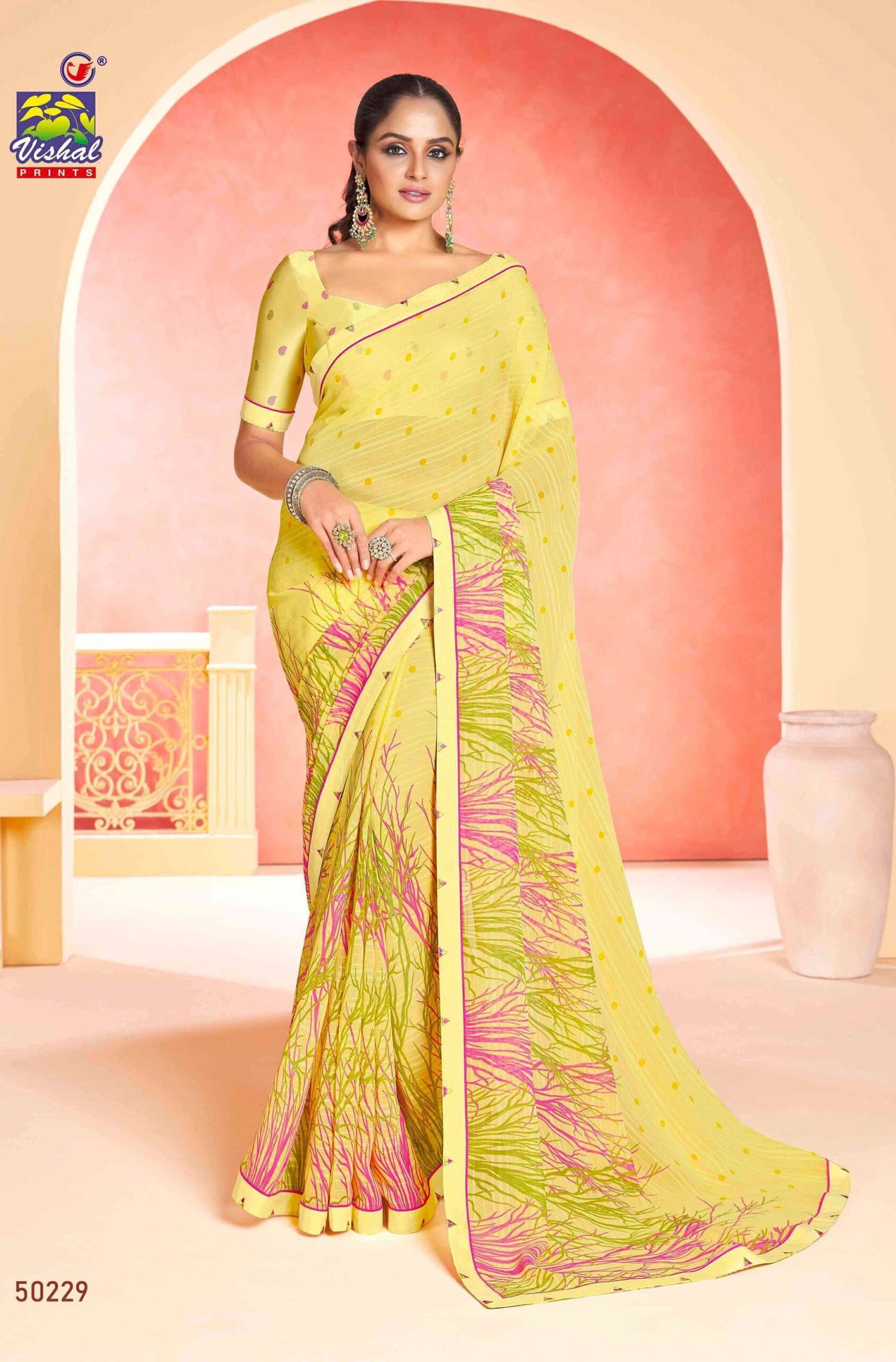 Printed Sarees: Agarwal Creation offers printed sarees with contemporary and traditional prints to reach a larger audience. These range from floral to geometric, paisley to abstract. It can be picked according to the mood of the person or event.