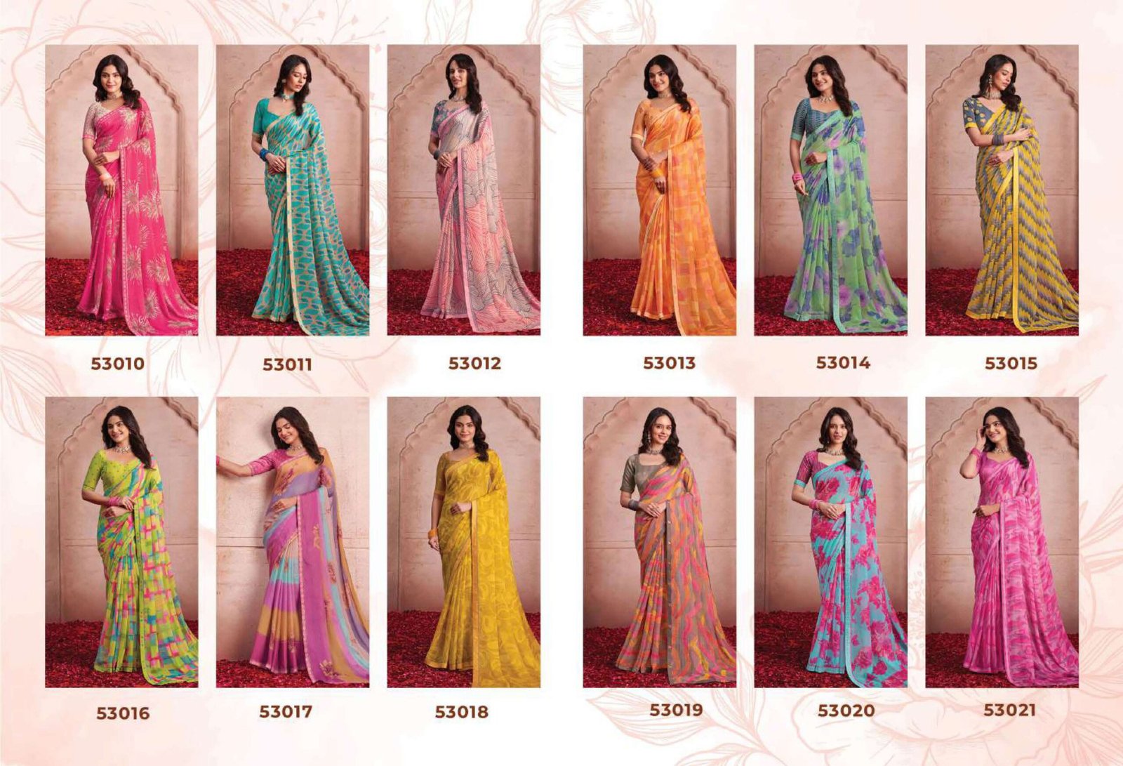 Printed Sarees: Agarwal Creation offers printed sarees with contemporary and traditional prints to reach a larger audience. These range from floral to geometric, paisley to abstract. It can be picked according to the mood of the person or event.