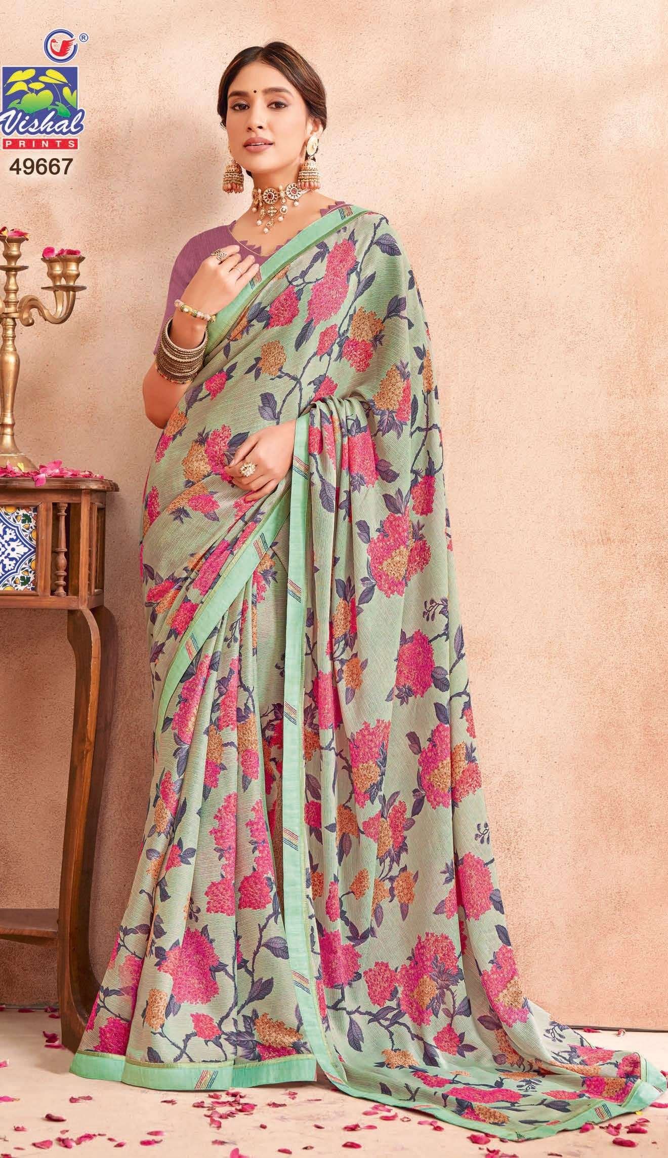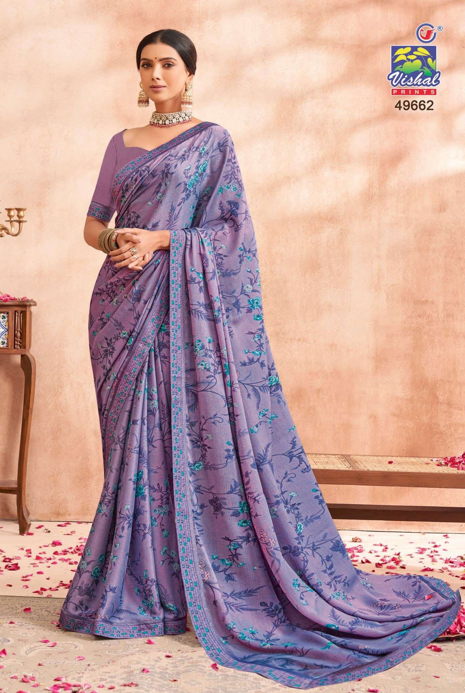 Printed Sarees: Agarwal Creation offers printed sarees with contemporary and traditional prints to reach a larger audience. These range from floral to geometric, paisley to abstract. It can be picked according to the mood of the person or event.
