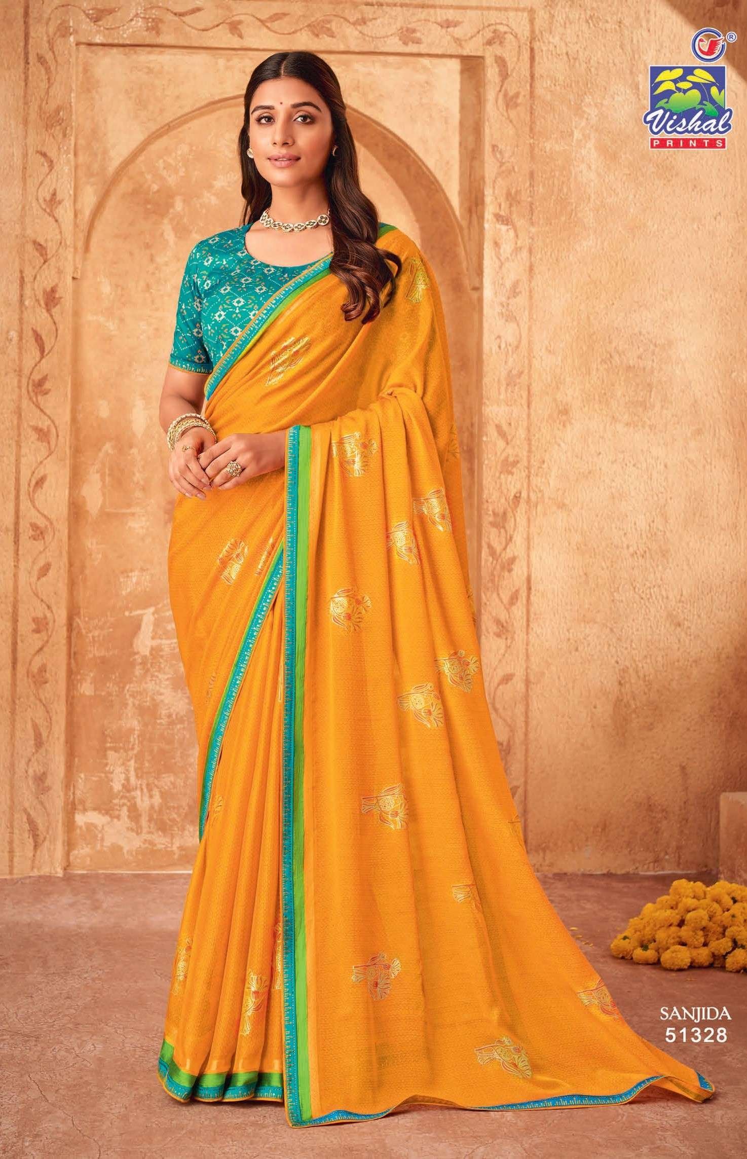 Printed Sarees: Agarwal Creation offers printed sarees with contemporary and traditional prints to reach a larger audience. These range from floral to geometric, paisley to abstract. It can be picked according to the mood of the person or event.