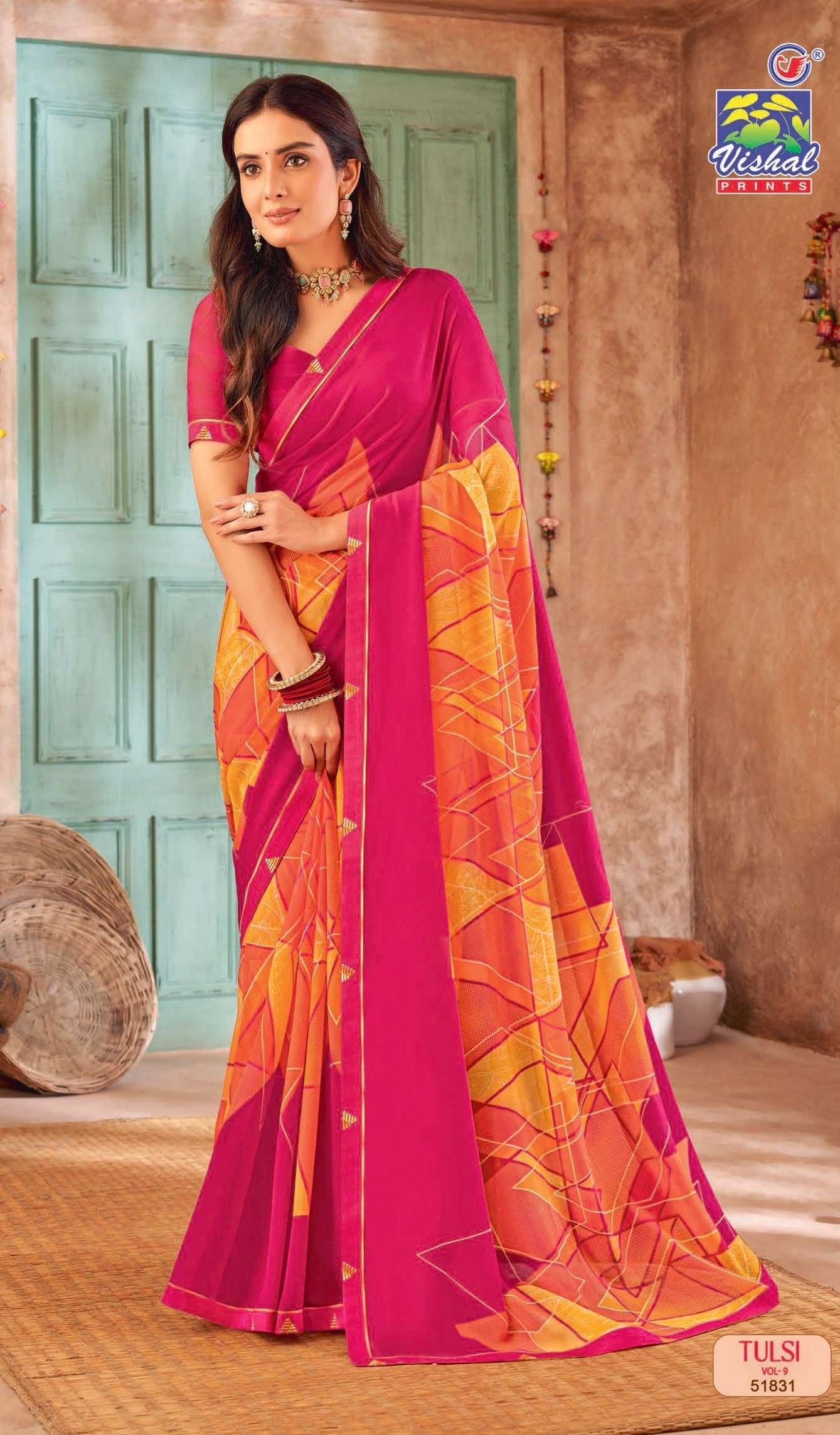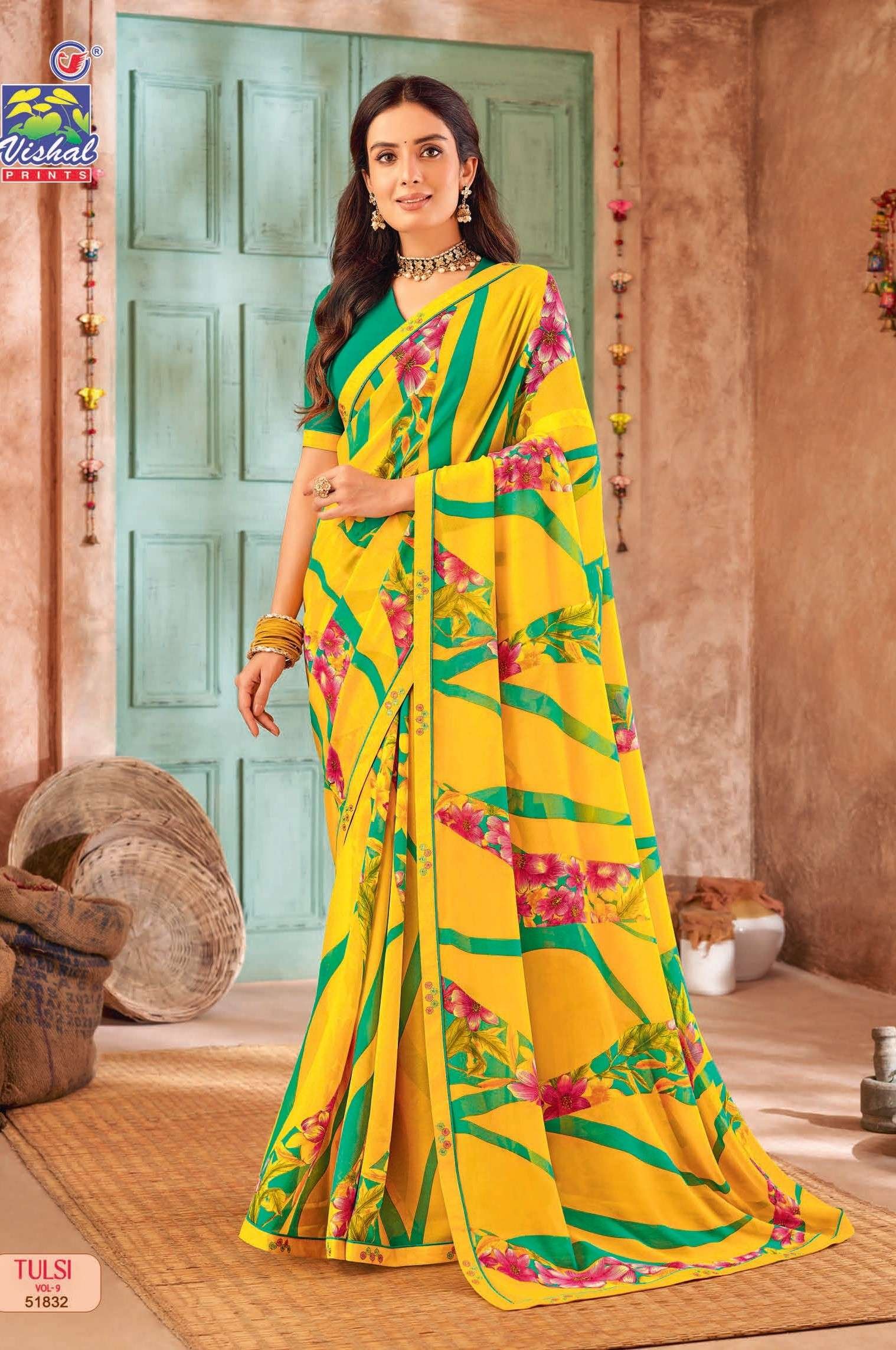 We, along with trusted vendors known for innovative designs, exemplary design quality and market reputation and under the supervision of Rupali Aggarwal, undertake to ensure proper delivery of sarees such as the Vishal Tulsi Vol 09 Saree into flawless conditions at any event making it unforgettable and beautiful and full of elegance.