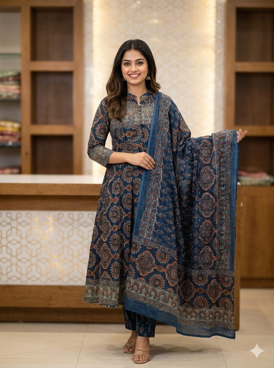 Be the first to review “Women’s Navy Blue Printed Anarkali Suit with Dupatta”